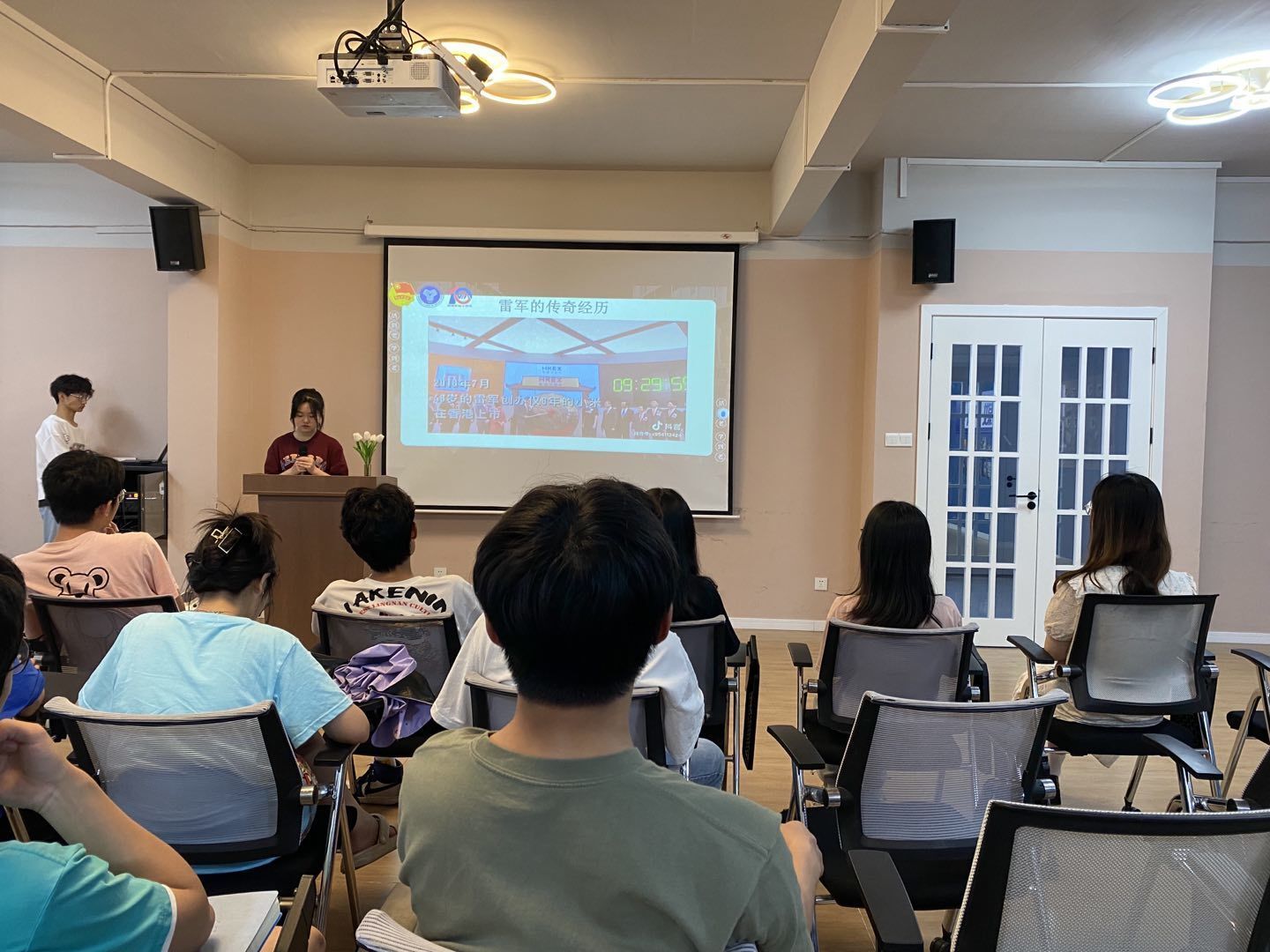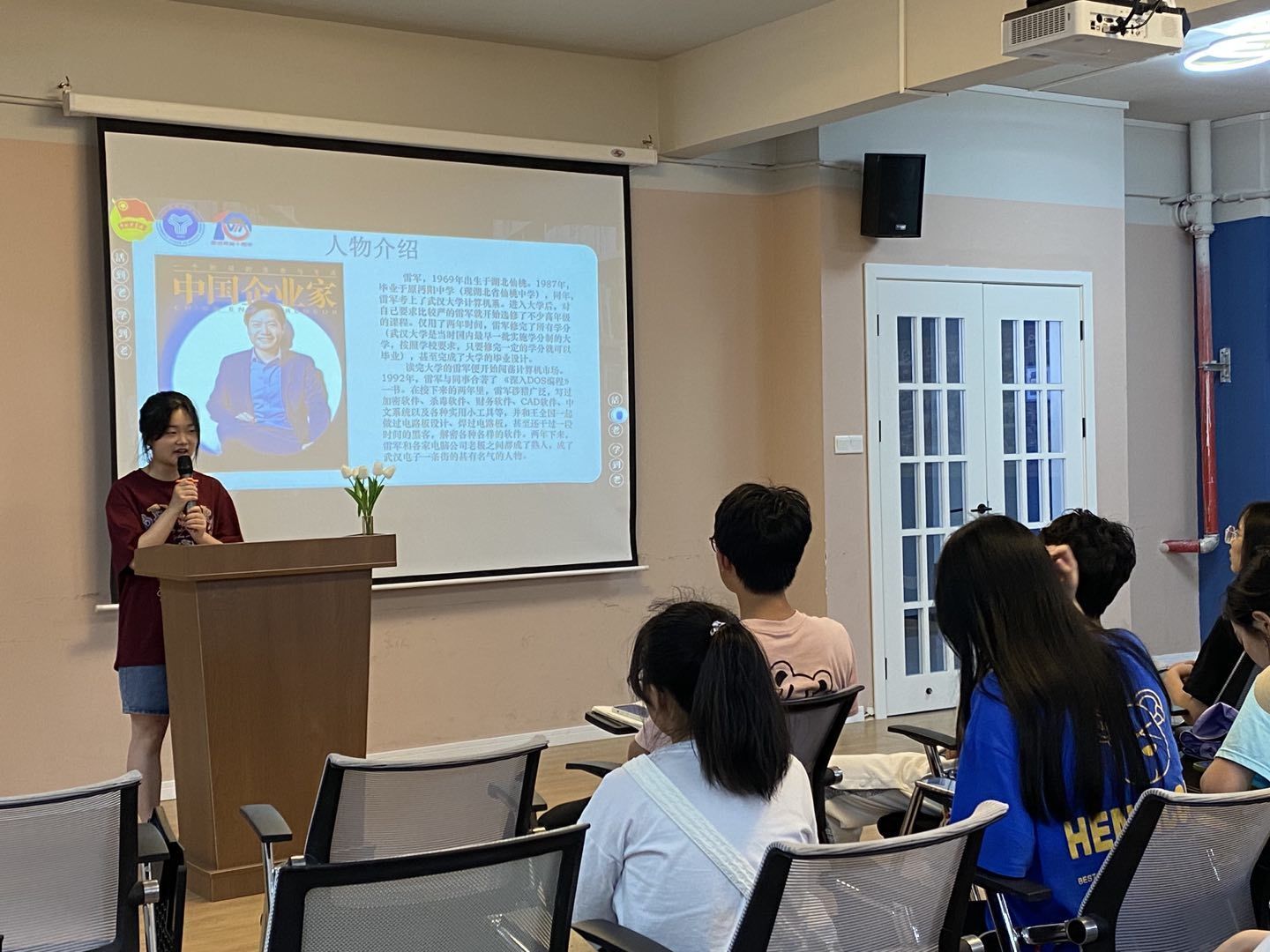 会上,“雷军的传奇经历”的影片分享以及深读《雷军传·站在风口上》一书。主持人带领同学们认识了具有“雷布斯”之称——雷军,学习其充满挑战的辉煌经历。作为新时代大学生,我们要以大咖为榜样,勇敢面对人生中的所有挑战,在逆风中把握方向,循着光的方向奔跑,凭借着年少的果敢勇往直前,走向属于自己的美好明天,展现自己青春的亮色!