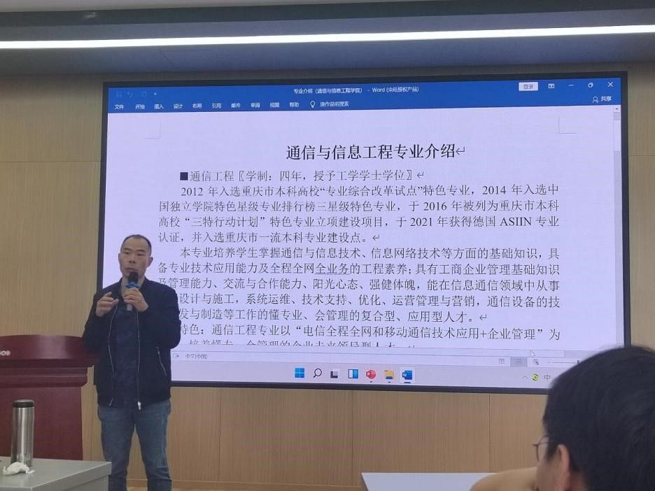 为做好学生转专业及专业分流工作,使同学们更加深入了解所学专业内涵,明确学习目标与发展方向,远景学院于4月13日、14日分别在302电影教室、智者楼304智者讲堂开展“专业院系进远景”活动,通信与信息工程学院王国树副院长、淬炼·国际商学院教研室主任杜嘉、教师代表尹欣、周晓蝶、陈冰川应邀分享,活动由教学副院长强杨主持,远景学院工商管理类、电子信息类专业全体学生参加。
