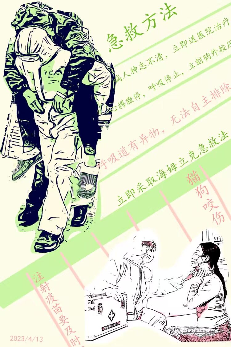 通过本次急救与海报的结合创作中,为完成相关的海报设计,在不断的查阅资料时,我了解到了很多急救知识,当危险出现时,要以最快的速度、最高的效率实行救助。例如,遇上有人忽然晕倒、溺水、户外受伤等意外情况,都需要专业的急救知识和技能才能救人于危急,评估现场是否安全,检查病人意识是否清醒,并立即拨打急救电话,都是主要行为。同时,我意识到了生活中处处有急救,而且离不开急救,学习急救知识,是我们每个人都应该做的事情。