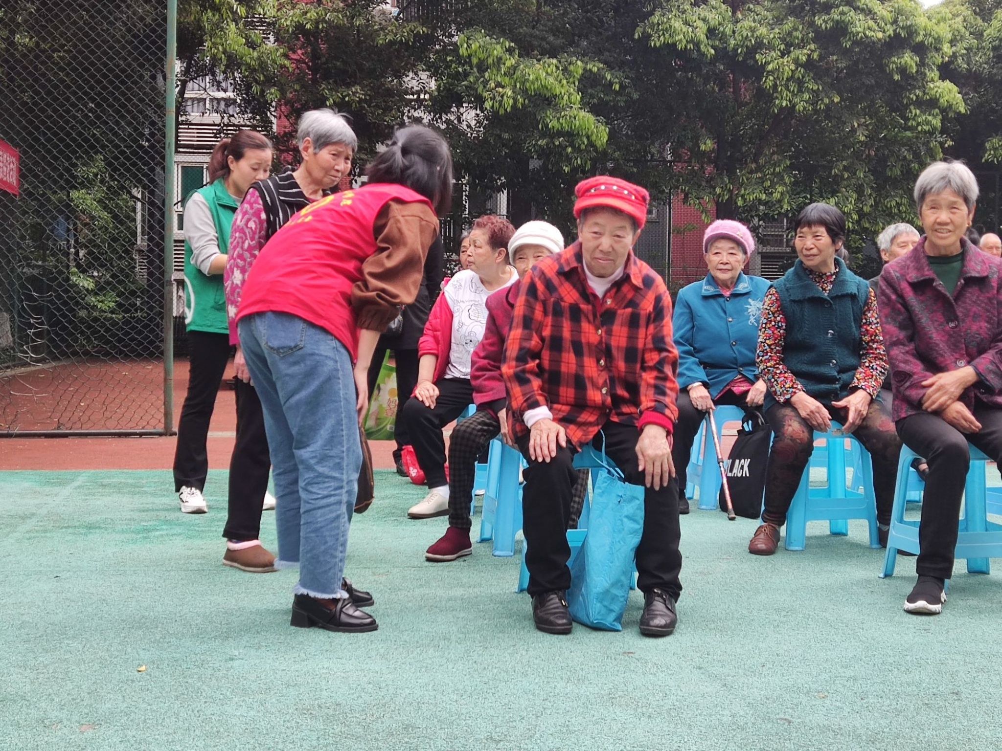 志愿者们首先为老人们展示了《感恩的心》手语操,在这短短几分钟的时间里,轻快的歌声和整齐的手语操感染了社区的老人们,有些老人打着拍子舞动,有些老人轻轻地附和歌唱,展示结束后志愿者们得到老人们热情的回应以及热烈的掌声。接下来是游戏环节,游戏名字是套圈赢水果以及气球大作战,让老人们再次体验了一把青春活力的感觉,小区公园里处处洋溢着老人们欢快的笑声。