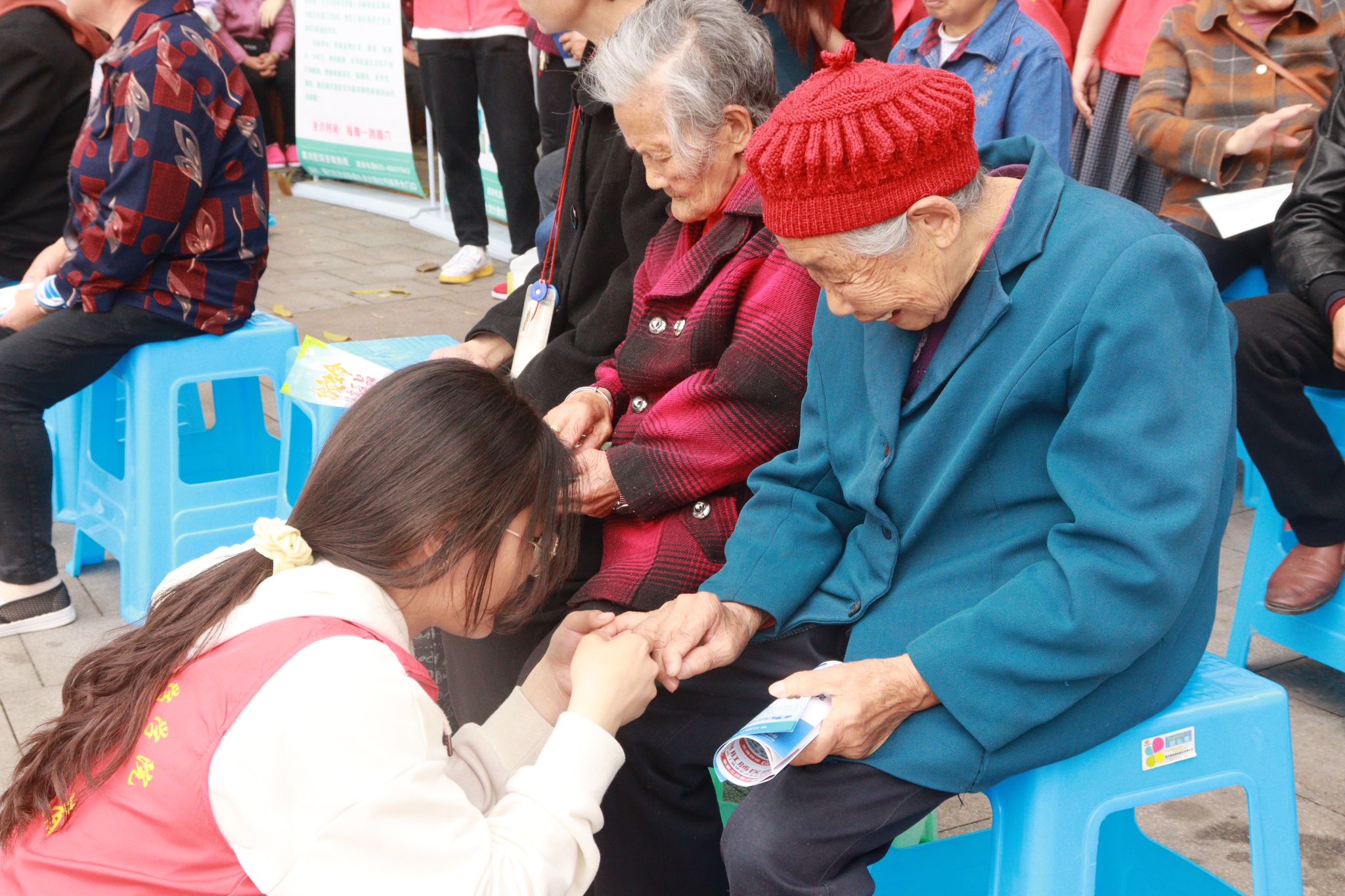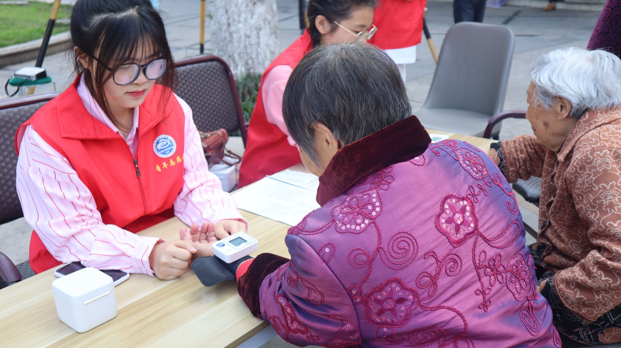 近年来,高血压是在老年群体中发病人数最多的疾病。于是,志愿者们便在活动协办医院的指引带领下,帮助医生和护士为老人们量血压,一遍一遍传达医生嘱咐和叮咛,为老人的身体健康提供一份安全保障,让老人感受来自社会的关爱和温暖,向社会传递了“尊老、爱老”的良好风气。同时,此次活动还为老人们带去了学校“e”心禁毒志愿服务专项支队的仿真毒品,吸引了老人们驻足观看,向老人们宣传禁毒防毒拒毒的理念。在活动过程中,志愿者们为老人们带来了精心准备的《甜蜜蜜》、《小苹果》、《最炫民族风》等歌曲节目,用朴实真诚的行动表达着对老人们的关爱,幸福的笑容洋溢在他们的脸上,暖意融融流淌在心里,用歌声和舞蹈来记录下今天美好又难以忘怀的回忆。志愿者们还为老人们带来的一支手势舞《国家》,献上了一场精彩的魔术表演,为现场添上一份温馨,整体萦绕着欢声笑语。
