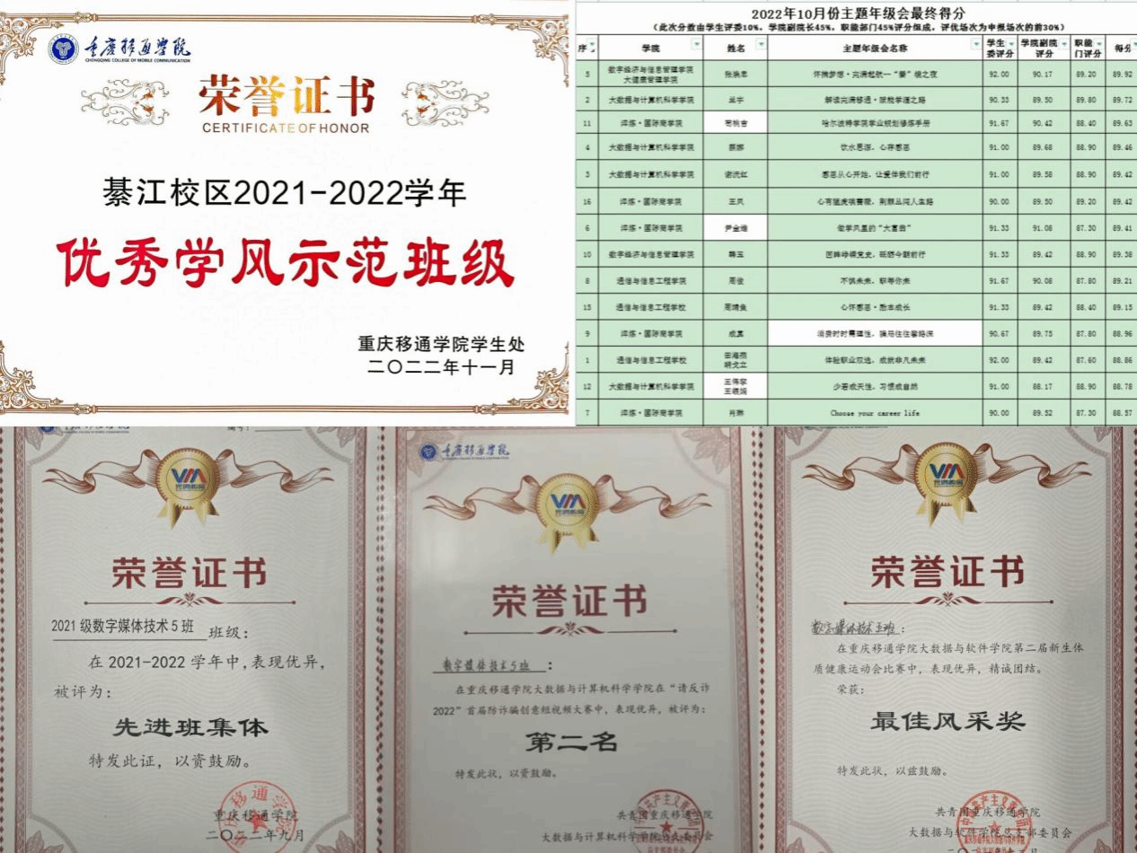 学风建设是一所大学的基本建设,是人才培养质量的重要保障,也是提高学术水平的关键,更是一所大学体现其校风校纪的关键。在大学中,学风关乎着每一位学生的健康成长以及毕业后的就业问题。2022年11月,2021级数字媒体技术5班荣获移通学院优秀学风示范班级称号。全班共36人,荣获这一称号与之中的每一个人都有着不可分割的关系。