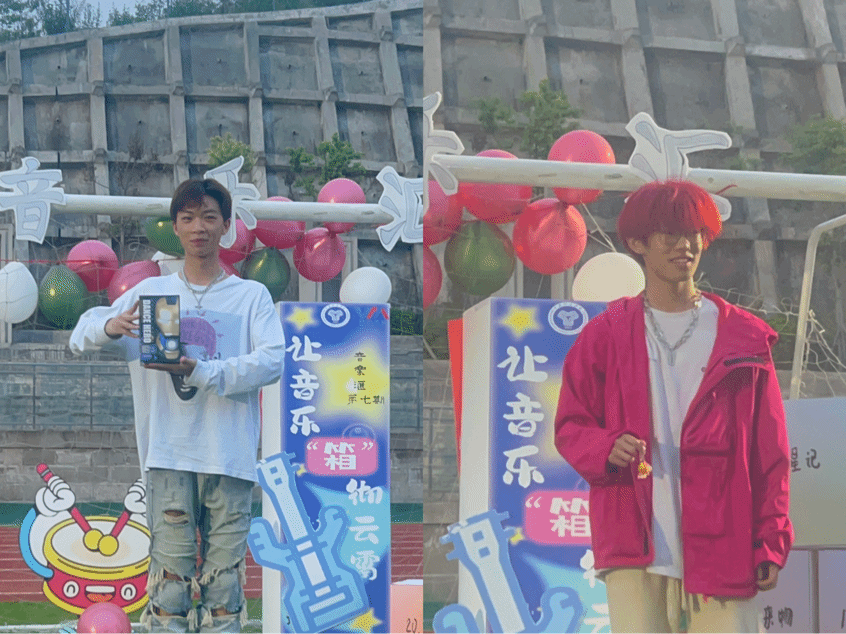 第一位同学演唱的歌曲是《个人简介》,第二位同学紧跟着演唱《山脚》。他们带来的说唱歌曲演唱直接将音乐汇现场“点燃”。