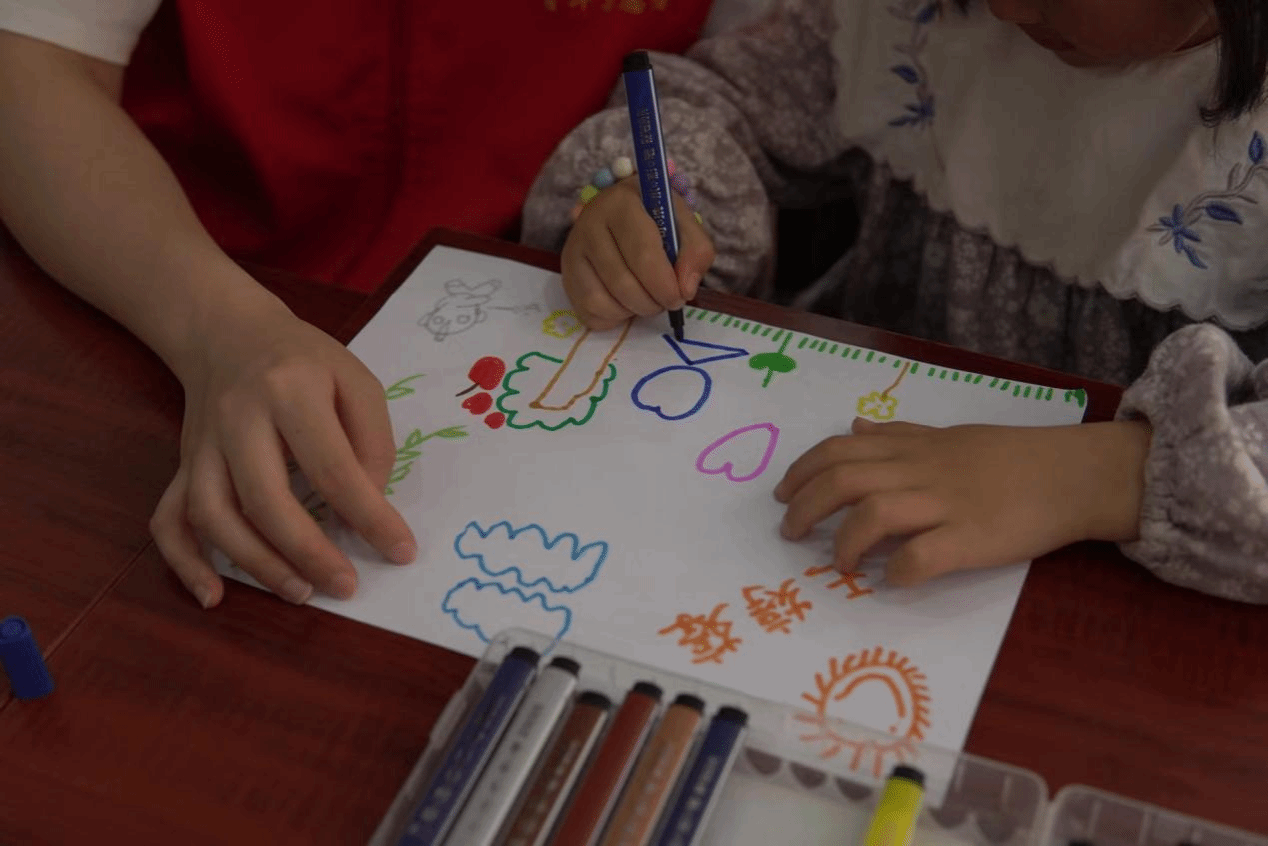 生活明朗,万物可爱,不负每一份美好。在活动时小朋友们的童趣与可爱给志愿者们留下了深刻的印象。爱玩是孩子的天性,志愿者们通过引导和陪伴,让孩子们能在玩耍中体验和感受传统文化的魅力:志愿者教唱《二十四节气歌》,孩子们在音乐的熏陶中了解我国二十四节气文化;小朋友们拿起画笔,在纸上为晚春增添色彩;一起折纸飞机,让纸飞机承载梦想启航……在游戏的过程中,志愿者与孩子们一同感受童真的乐趣,孩子们的认真努力也深深感染了志愿者。