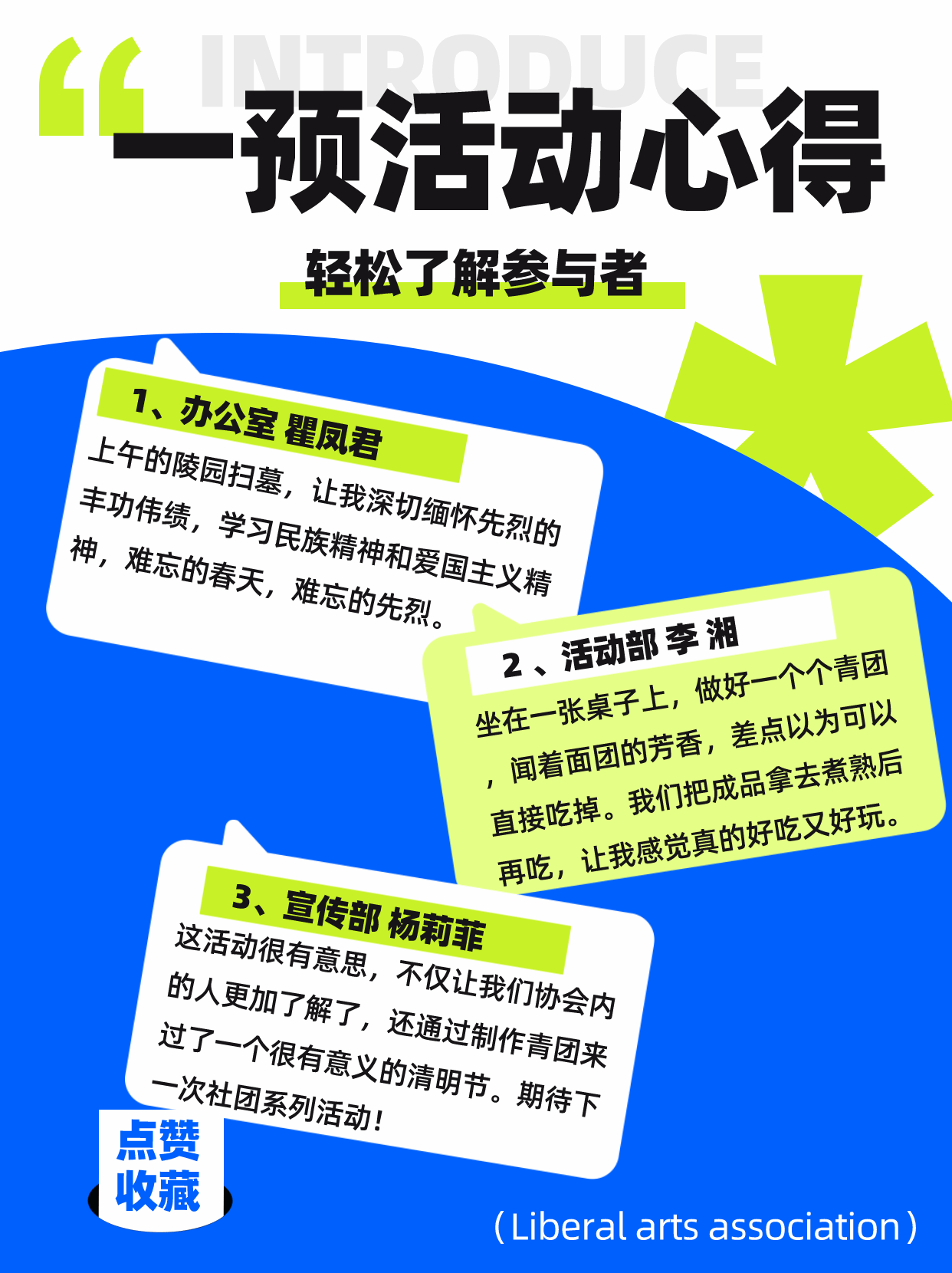 “只此青绿·风清景明”作为本社团系列活动——“草木有趣,跟着节气‘品’日子”的第一个子活动,团建使本协会开始注重探寻传统文化的意义与价值,向“堃而博厚”的中国传统迈进;使学生把传统文化知识与实际生活相关联,了解优秀的传统文化并传承,将学到的知识转化为实际成果,真正做到学以致用、融会贯通。