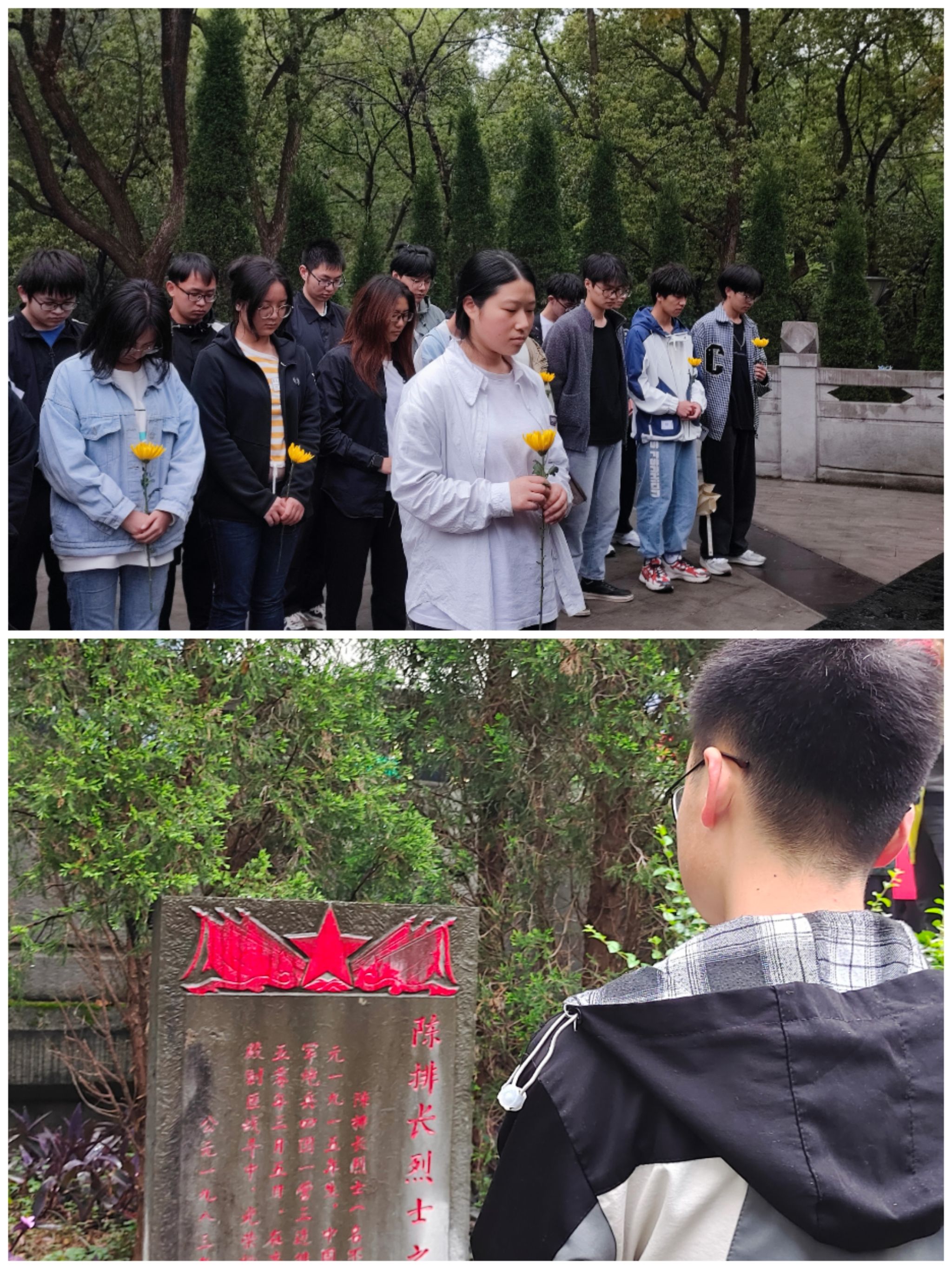 泛舟历史长河,犹记峥嵘岁月。清明时节祭奠英烈,缅怀追思先辈,是为了不能忘却的纪念。博雅协会成员走进綦江区烈士陵园,追寻先辈历史,感悟洗礼中的峥嵘岁月。最好的缅怀是传承,最好的纪念是奋斗。同学们对革命先烈致辞,庄严地摆上寓意着“敬畏”与“悼念”的菊花,并深深地鞠躬默哀三分钟。三分钟,无法表达我们的敬意;三分钟,无法表达我们的谢意;三分钟,让我们共同的祈祷:我们的英雄,在天堂一切安好。