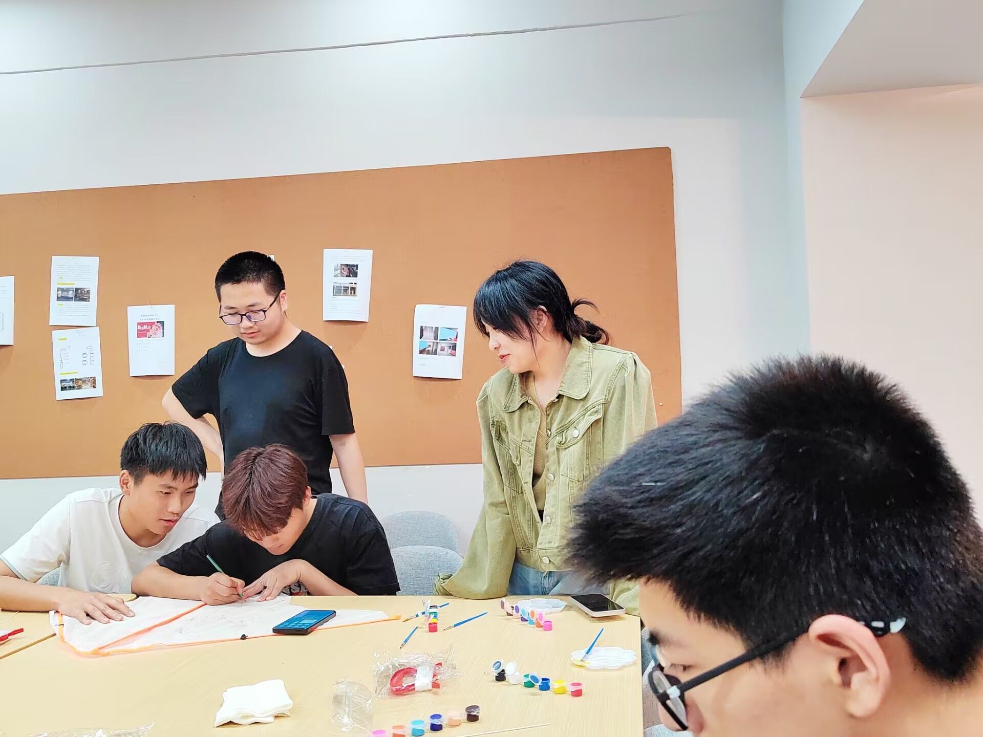 陈老师带来的风筝,留下着一片又一片的空白。五颜六色的画料作为工具,少年将奇妙无比的想象力赋予纸笔。鼓励我们做大胆创新的新青年,创造力永不枯竭,兴奋之情也不会停止。细细的微笑在每个人脸上,不易察觉。在画作上,体现着每一个人独特的思维方式,陈导师在欣赏也在逐渐走进别样地花样人生。我们执起画笔,落下浓墨重彩的一笔,画面也定格在那一瞬。