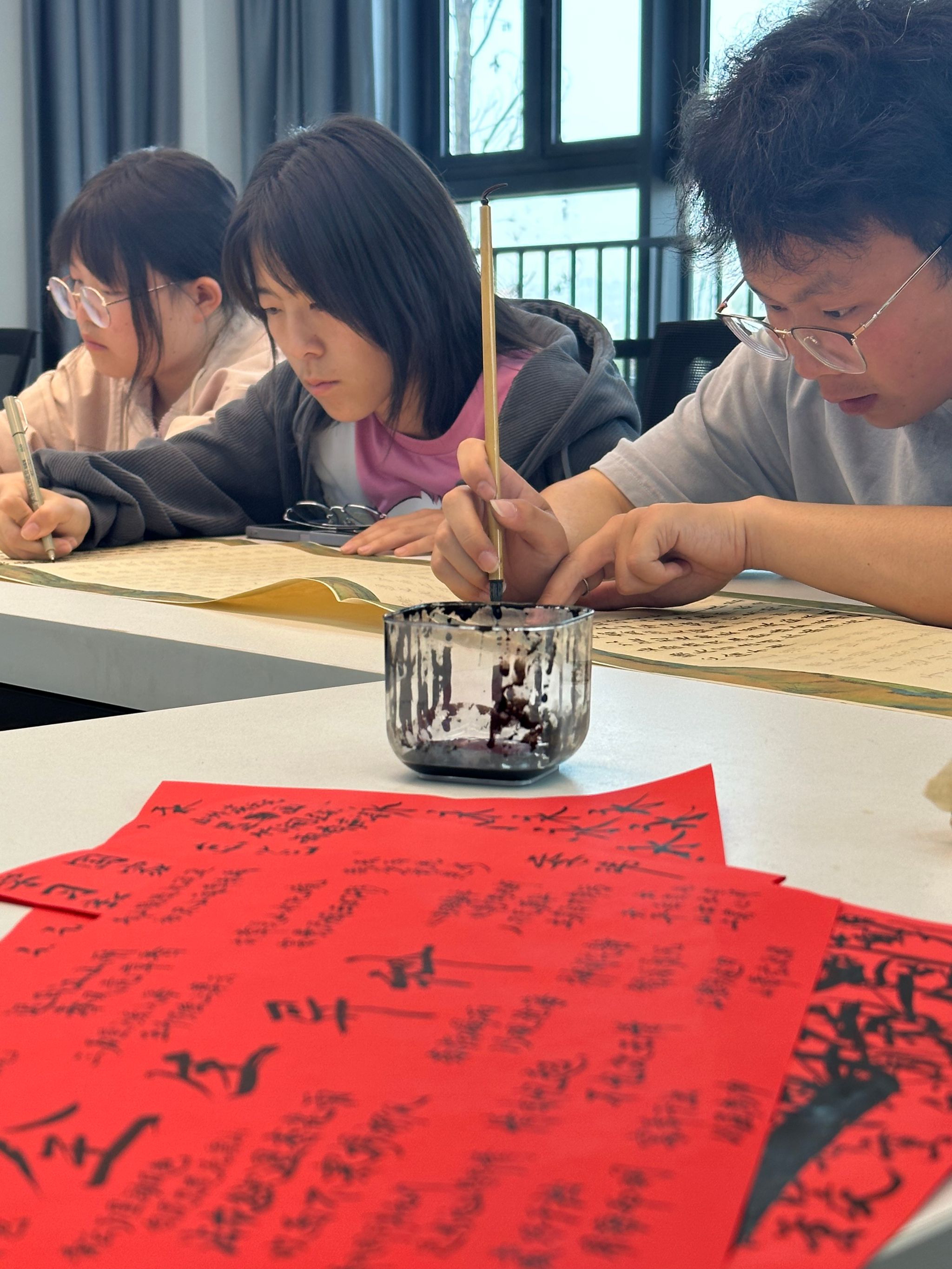 一字一世界,一笔一乾坤。书法是中国人最独特、最高妙的文化符号。4月10日,大数据与计算机科学学院异科导师杜荧带领班级同学于玉棠书院·地心会议室开展了书法研习活动。活动旨在以书法艺术为载体,弘扬优秀传统文化,让同学们走进文化、感受文化、热爱文化,进一步增强文化自信,在传统文化氛围中感受美好生活。
