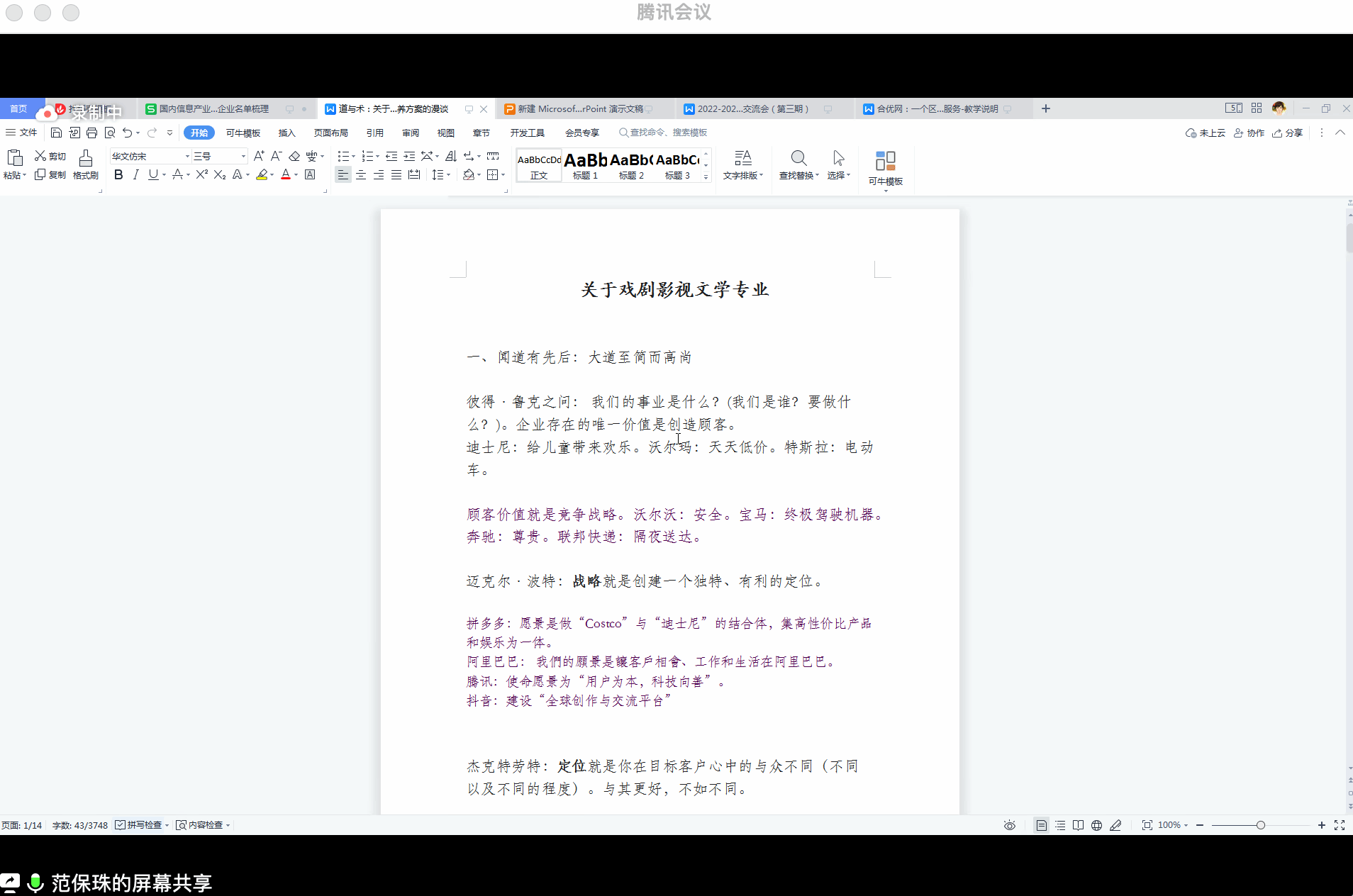 另外,范院长在会上还结合彭鸿斌董事长在戏剧影视学院专业建设上提出的要给老师们做了分享,包括提到为何办该专业及我们独特价值在哪儿,范院长强调学校愿景是成为中国最受尊崇的民办大学,未来课程建设应该契合学校发展目标,契合人才培养目标,为社会输送更多管理人才。