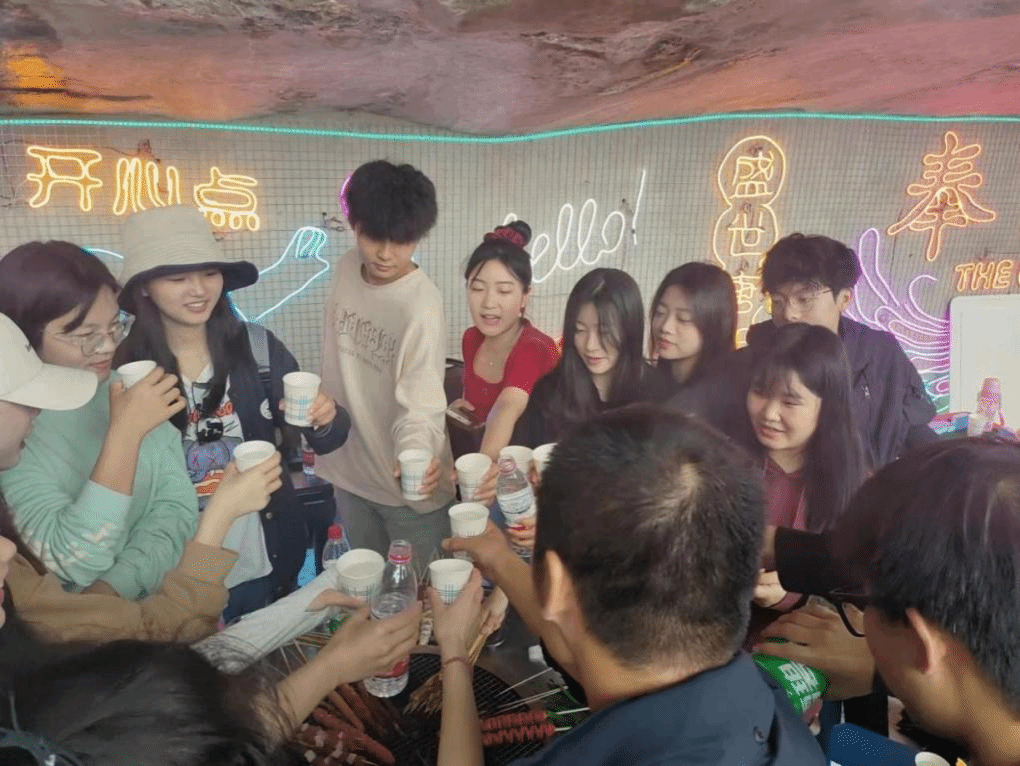团建以烧烤为开始,拉开活动的序幕,同学们拉开架式,展示自己的不俗厨艺。各种食材在烧烤铁架上中滋滋流油,郁浓美味的烟火萦绕中漂香四溢。安奕萱同学翻转腾挪,于烟雾氤氲之中为同学们烤得各种美食,显示了自己深厚的厨艺功底;黄彪同学的烤豆干、蒜蓉茄子等硬菜也惊艳了同学们。同学们在欢声笑语中大快朵颐,师生们在热烈的气氛中举杯畅饮,开怀共叙,席间还领略了“变脸”传统川剧艺术精彩表演。