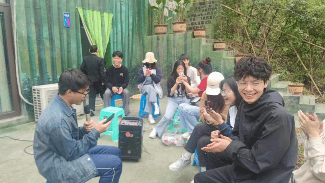 吃饱喝足后同学们开始了K歌比赛,才艺表演,无论是轻松抒情的慢歌,还是燃情奔放的劲曲,同学们都驾驭自如,还引得一众游人驻足观看,久不离去。