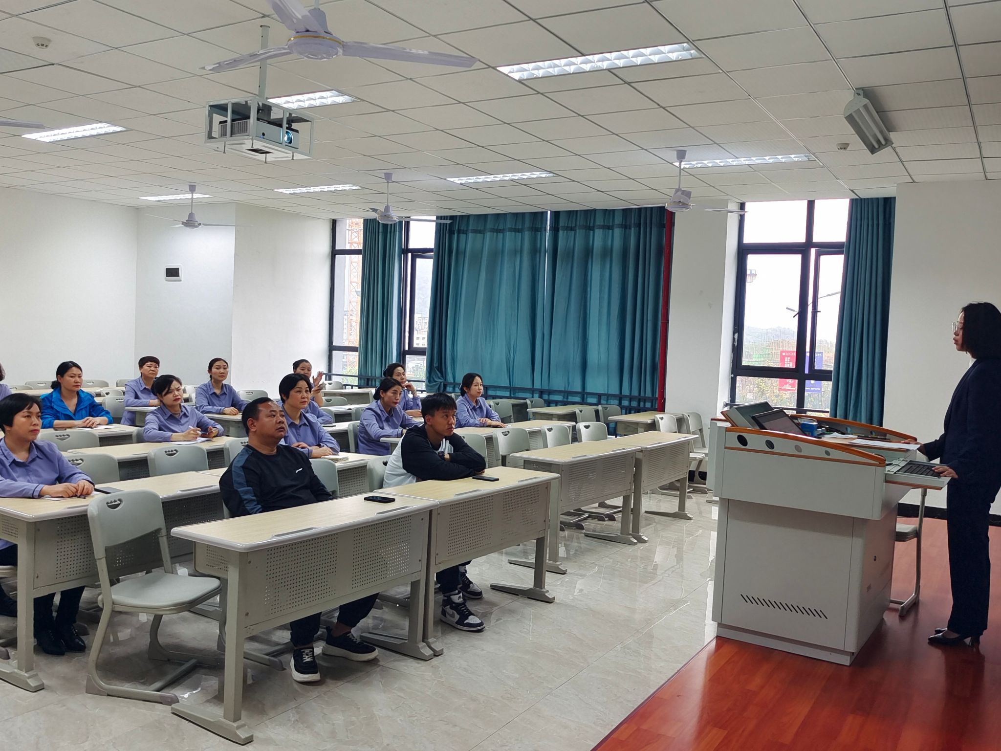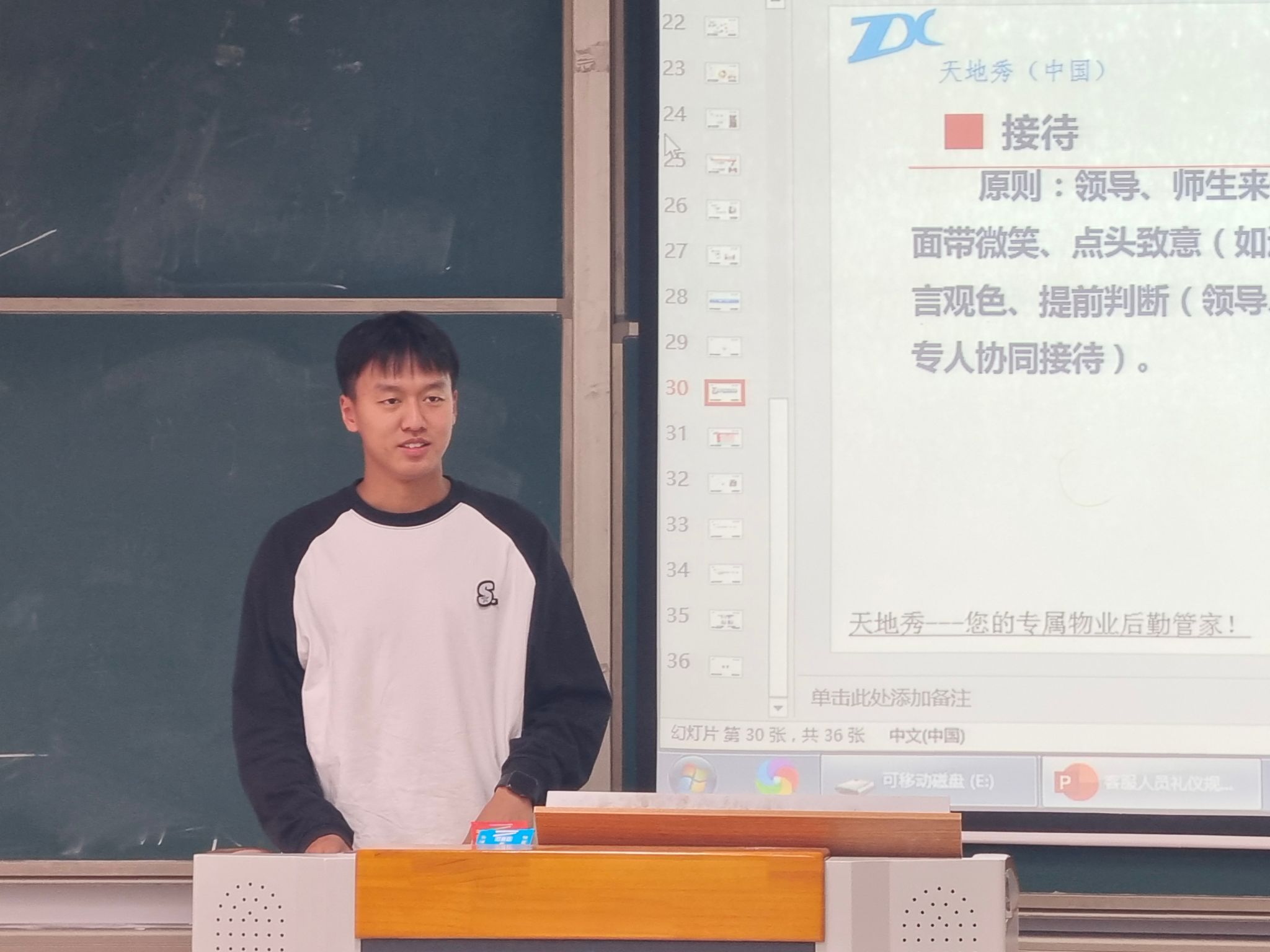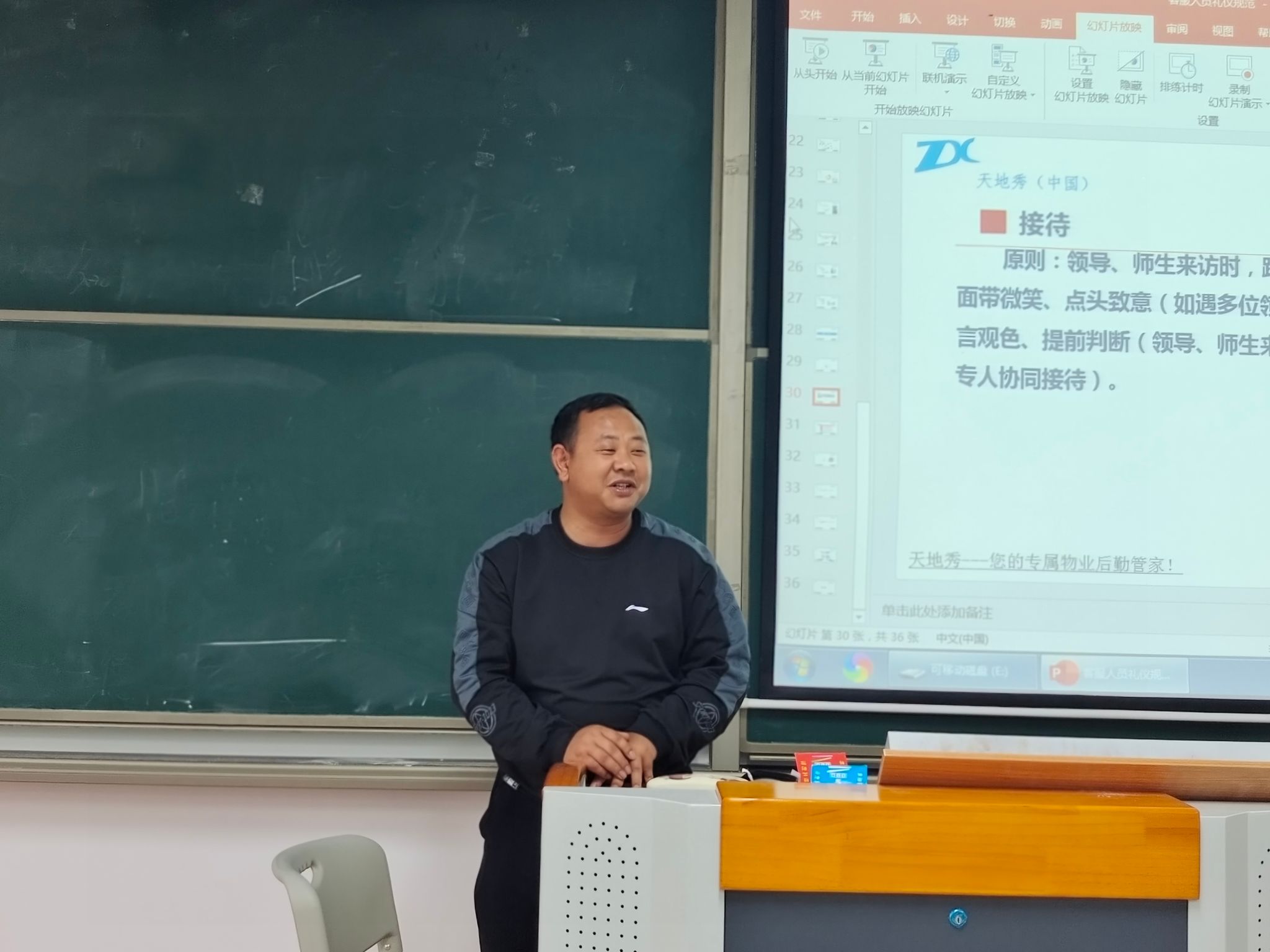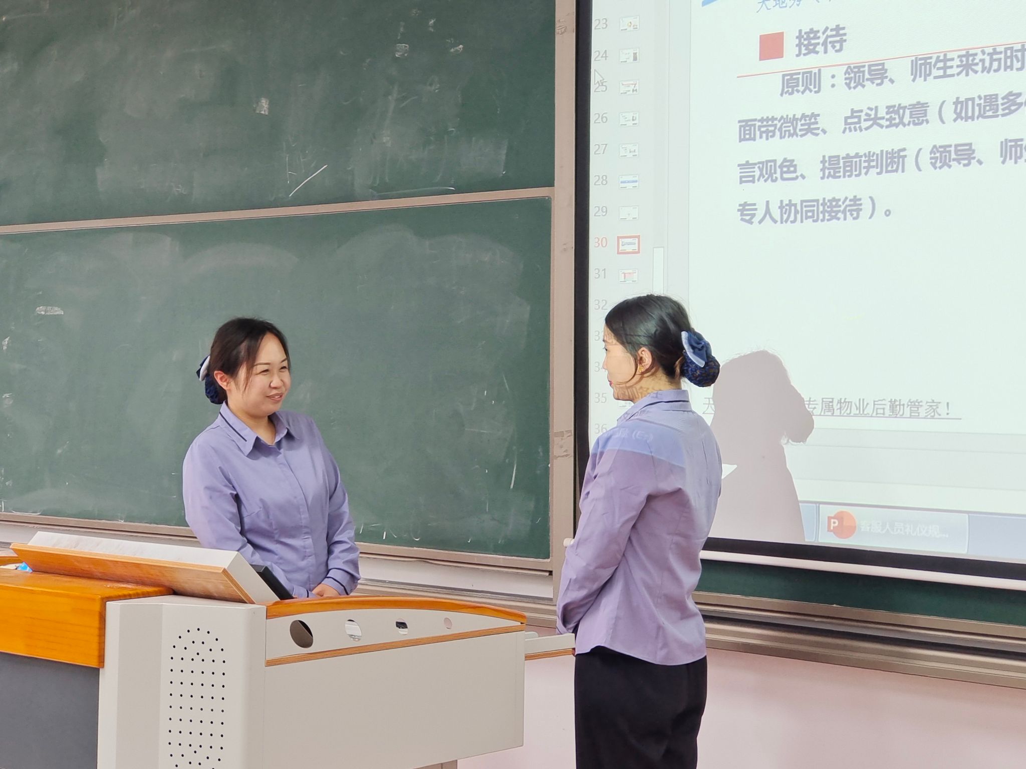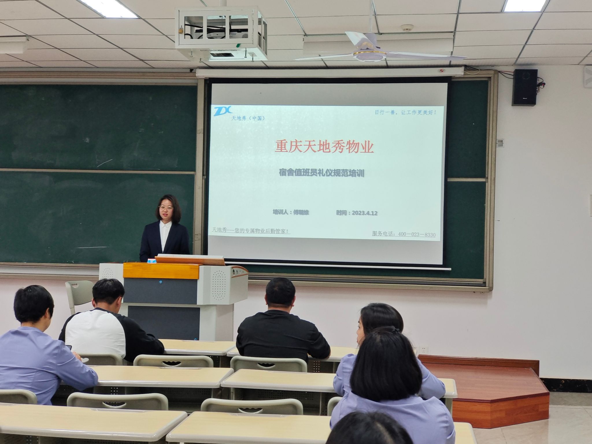 “不学礼,无以立”,为了提升学生处宿舍值班员的自身素养和专业技能,树立良好服务形象,增进与师生间的关系,提高师生服务满意度,重庆移通学院綦江校区学生处于4月12日下午4点在仁者楼205教室开展宿舍值班员礼仪培训,培训由重庆天地秀物业公司客户主管傅朝维主讲,学生处田猛老师、匡鹏老师现场观摩指导。