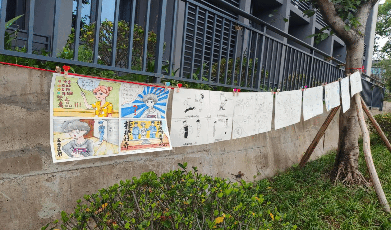校园的书香气吹动一幅幅画,也带动了丝丝珍惜生命的气息。这也告诉我们,青春年少,不要因为一念之差而误入歧途,珍爱生命,远离毒品,愿每个人都能在充满鲜花和阳光的世界里健康成长。同学们的用漫画讲述了禁毒故事,宣讲了禁毒知识,大家都在用自己的努力去创建无毒校园和社会。