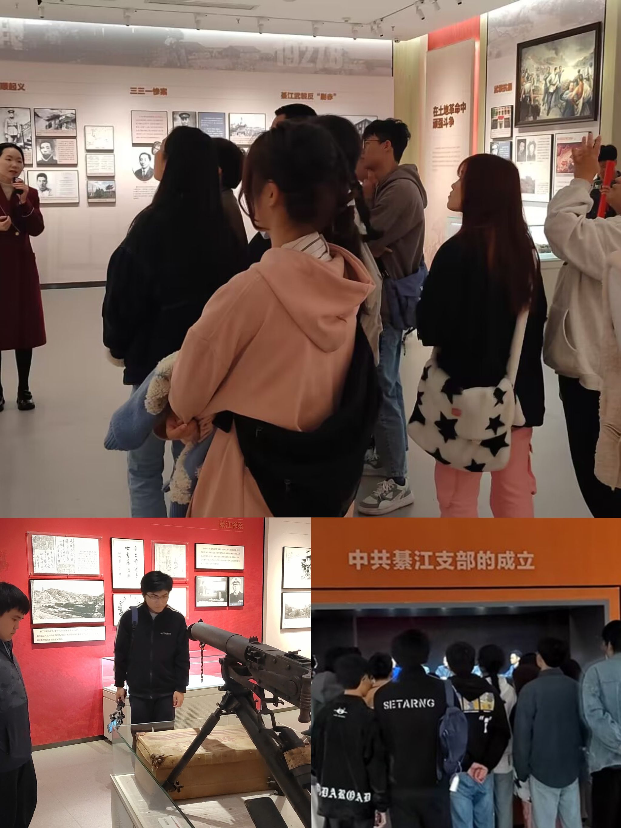 綦江是我党在重庆第一个党组织的诞生地,江竹筠等革命先烈都曾在此工作,在讲解员的引导下,师生驻足在大屏幕前,身临其境地观看了中共綦江党支部的成立。