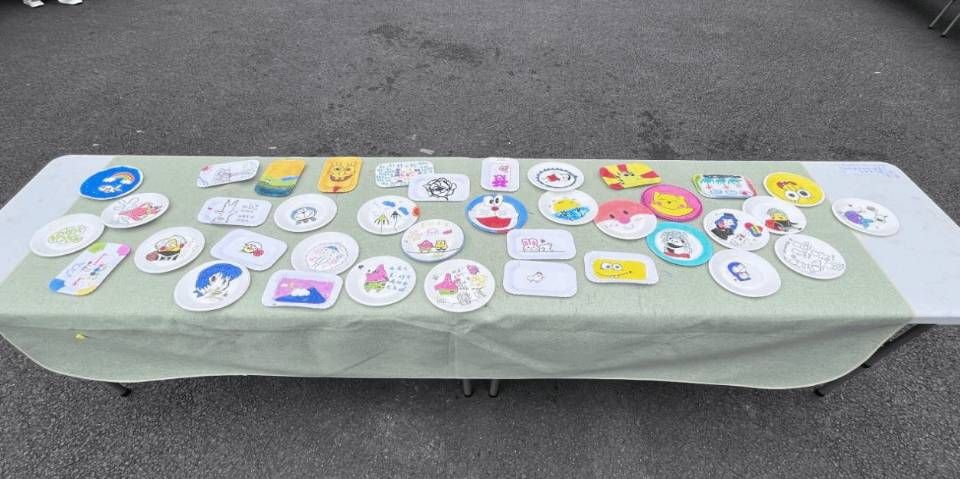 时间悄悄溜走,盘绘很快到了尾声。每位参赛选手将自己心仪的作品统一交到活动现场前面。夕阳西下,原本洁白的大长桌上在一幅幅盘绘作品的点缀与装饰下显得格外耀眼。色彩的装点与线条的勾勒绘出了每名参赛选手心中向往的大学生活。在场的每个工作人员根据评分标准选出最具有特色的五个作品,分别在蛋糕盘背后留下可爱的小勋章。
