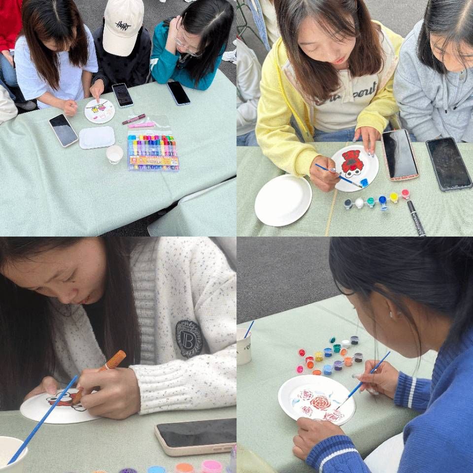迎着春风的暖意,沐着春日的骄阳,参赛者们珊珊来到我们的盘绘地点,怀着心目中的大学蓝图,手执彩绘笔,在蛋糕盘上龙飞凤舞,描绘自己精彩的大学生活,同学们个个聚精会神,或沉浸在自己大学精彩生活的瞬间、或想象着未来时光的美好,时而眉目舒展、时而低头沉吟,每个团队都十分专注,力求完美,于是小小的蛋糕盘里盛放的不仅是一副未完成的画作,更是同学们美好的梦想!