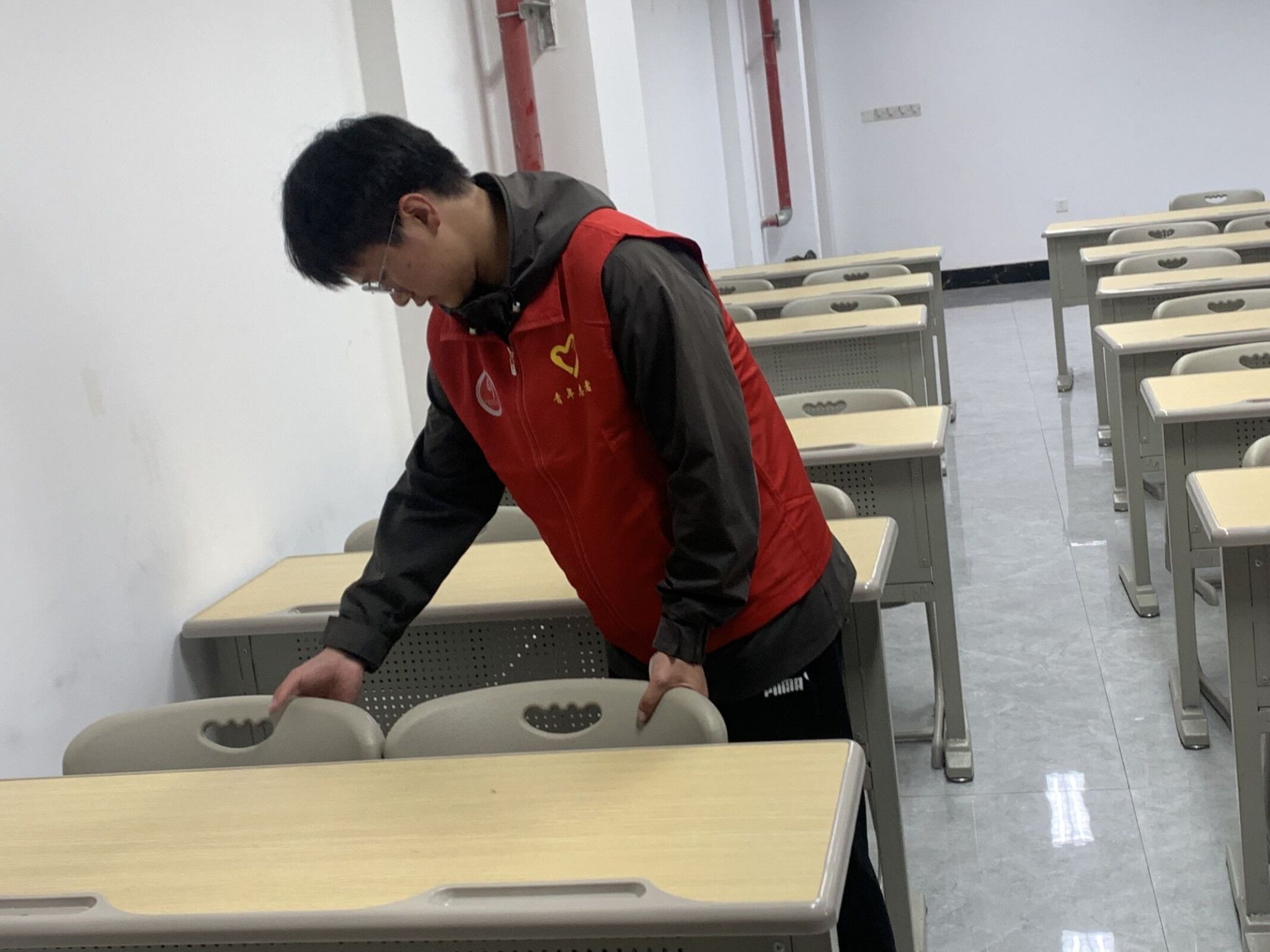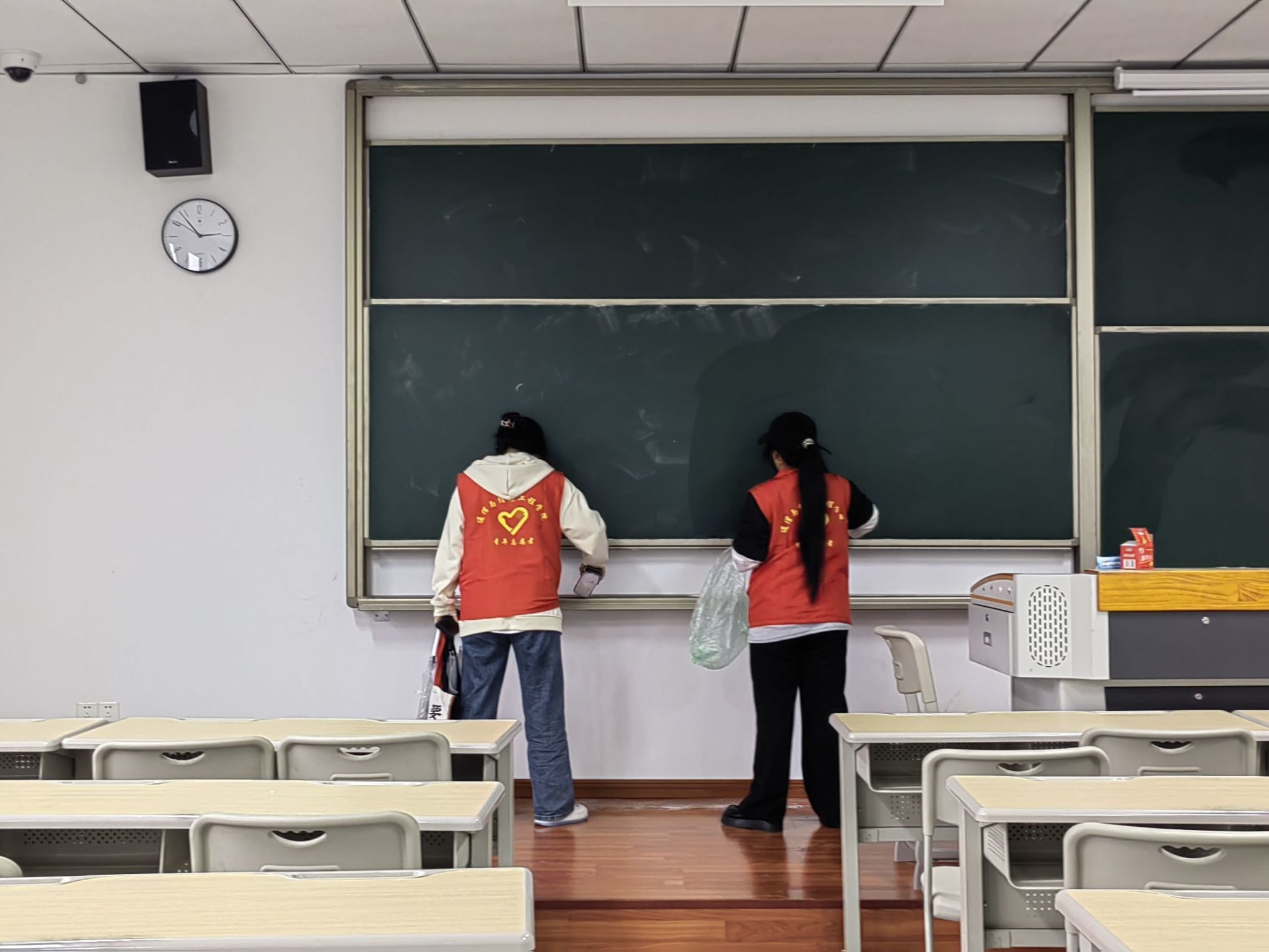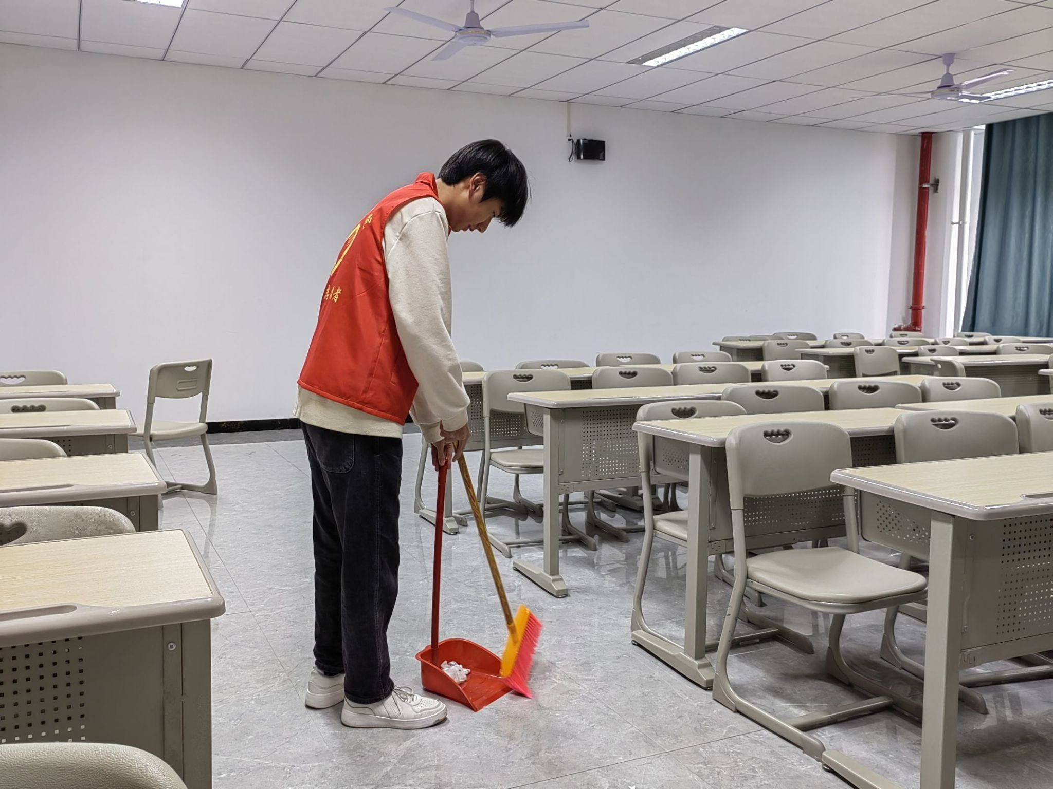 到达各自区域后,志愿者们积极并有条不紊地开展工作。志愿者们收集同学们遗失的物品,擦拭课桌椅子和清扫教室地面,擦拭灯的开关和教室门及其门牌。这不仅提高了志愿者的实践能力,还增强了他们对于学校的集体认同感。