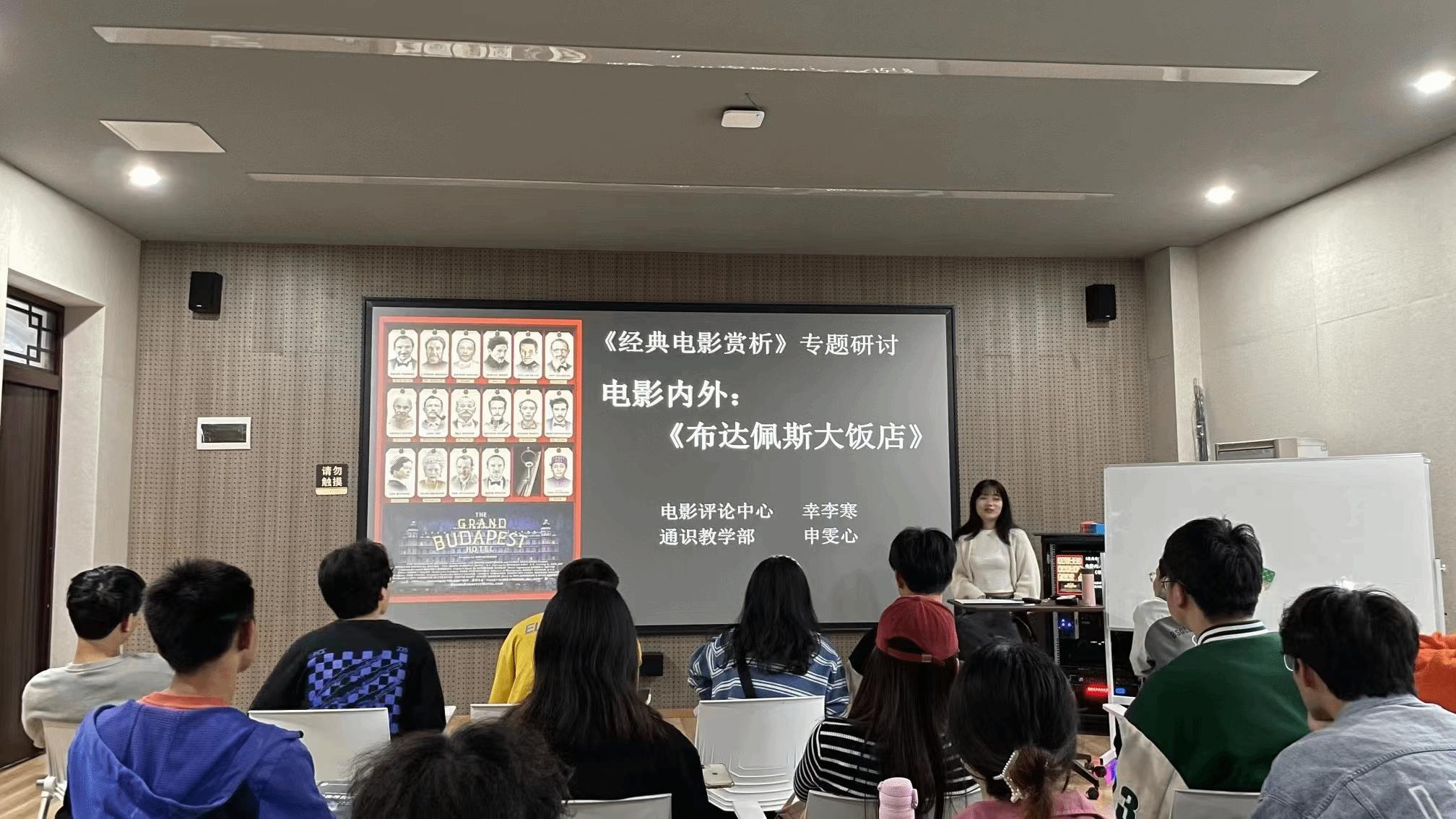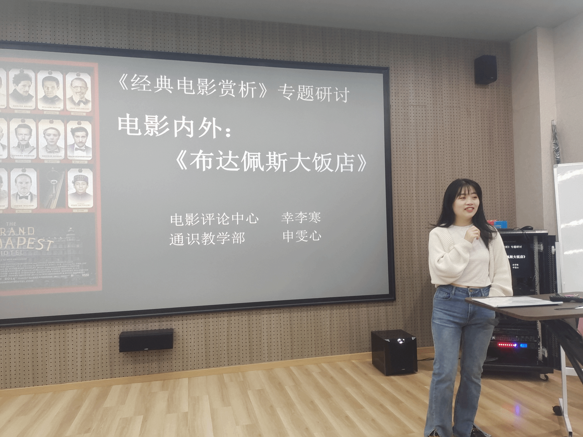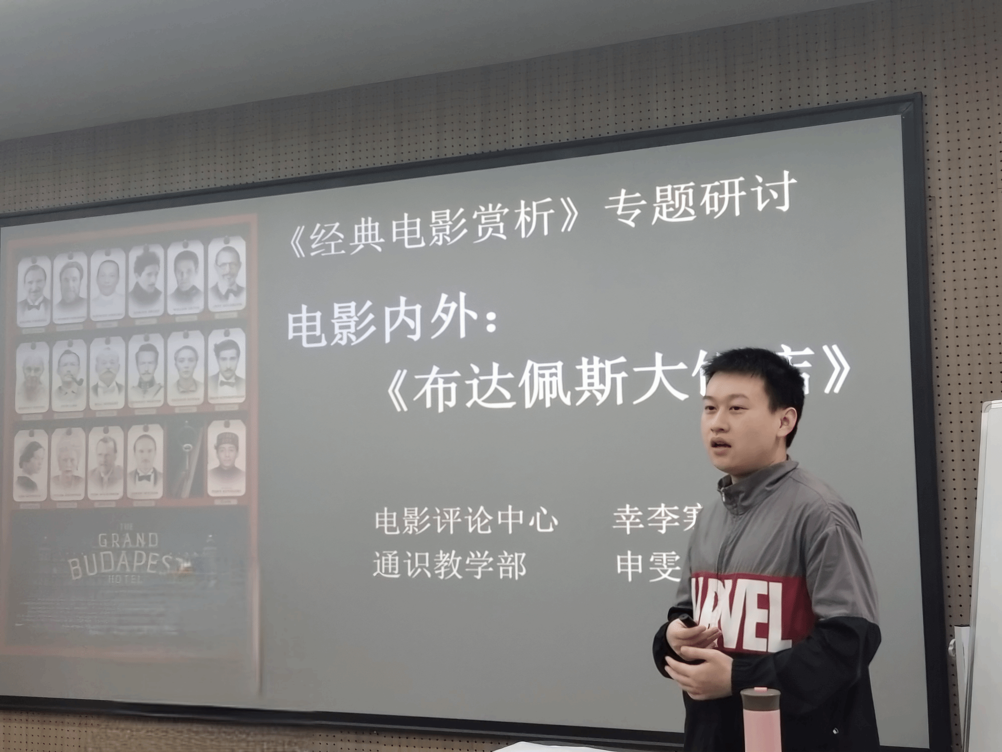4月4日,我们在《经典电影赏析》的课堂上,从“双师共创课堂”的教育模式里,通过跨学科知识与电影视听语言相结合的形式,对经典影片《布达佩斯大饭店》进行深入解读。电影评论中心的幸李寒老师和通识申雯心老师与我们一起,用跨学科与专业相融合的视角探索电影《布达佩斯大饭店》背后的故事。
