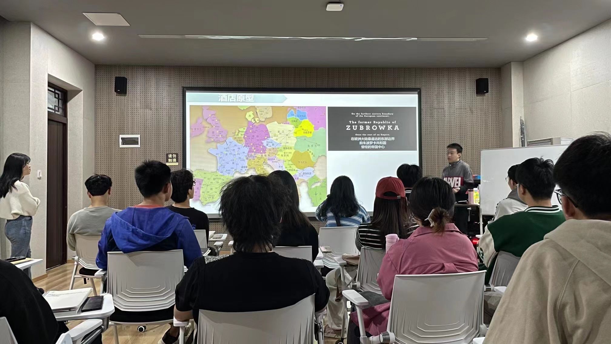 通识申雯心老师从欧洲文明的视角切入,从欧洲政治、历史、文化等层面为我们讲述了电影《布达佩斯大饭店》现实世界的时代背景。在申老师关于欧洲历史文化的解读中,我们了解到,影片字幕中不同的时间点都代表了不同的历史时代背景:1932年二战伊始,1933年希特勒上台,纳粹德国成立等。影片中的一些小心思也被一一解开:饭店内混战时人们所用的不同枪支隐喻着当时多国正在进行战争,主角第二次越过边境时影片色调转变成黑白也暗示着主角的悲惨结局和战争爆发后人与人之间的情感牵连也消失殆尽。