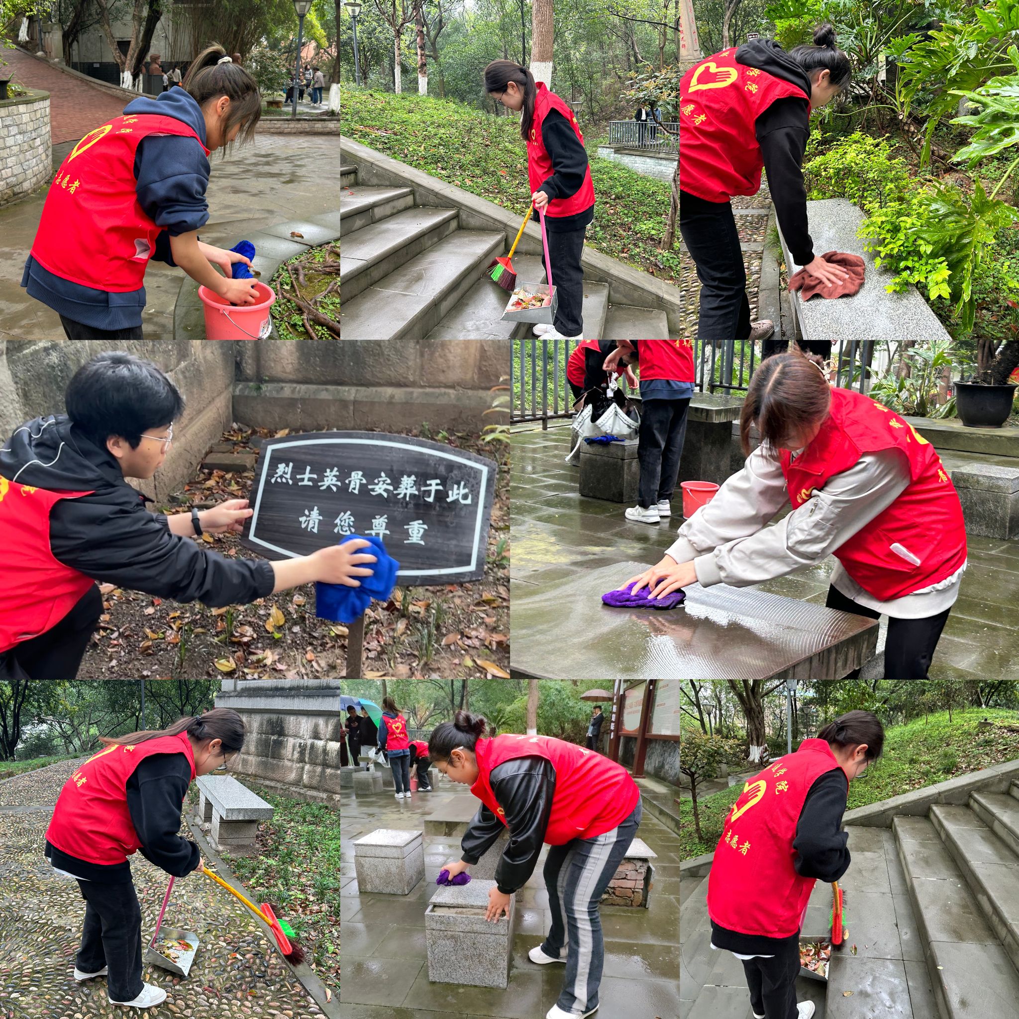 “万物生长此时,皆清洁而明净”,我校青年志愿者于清明之日拂去纪念碑上的污泥与淤水,扫去地面上的落叶,春雨在大地上留下诗篇,将万物写成思念。思念着先烈们的模样,无法忘怀以生命为代价赢得今天的和平与安宁的英雄们,他们的明净由当代青年来守护。