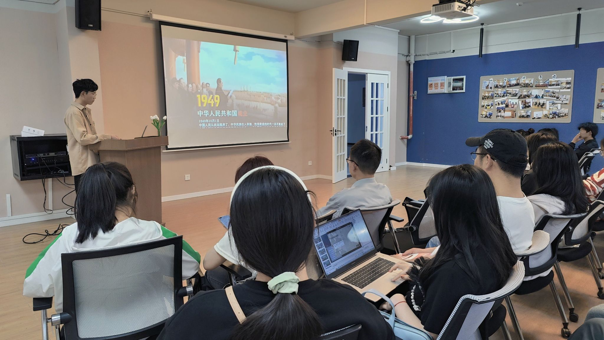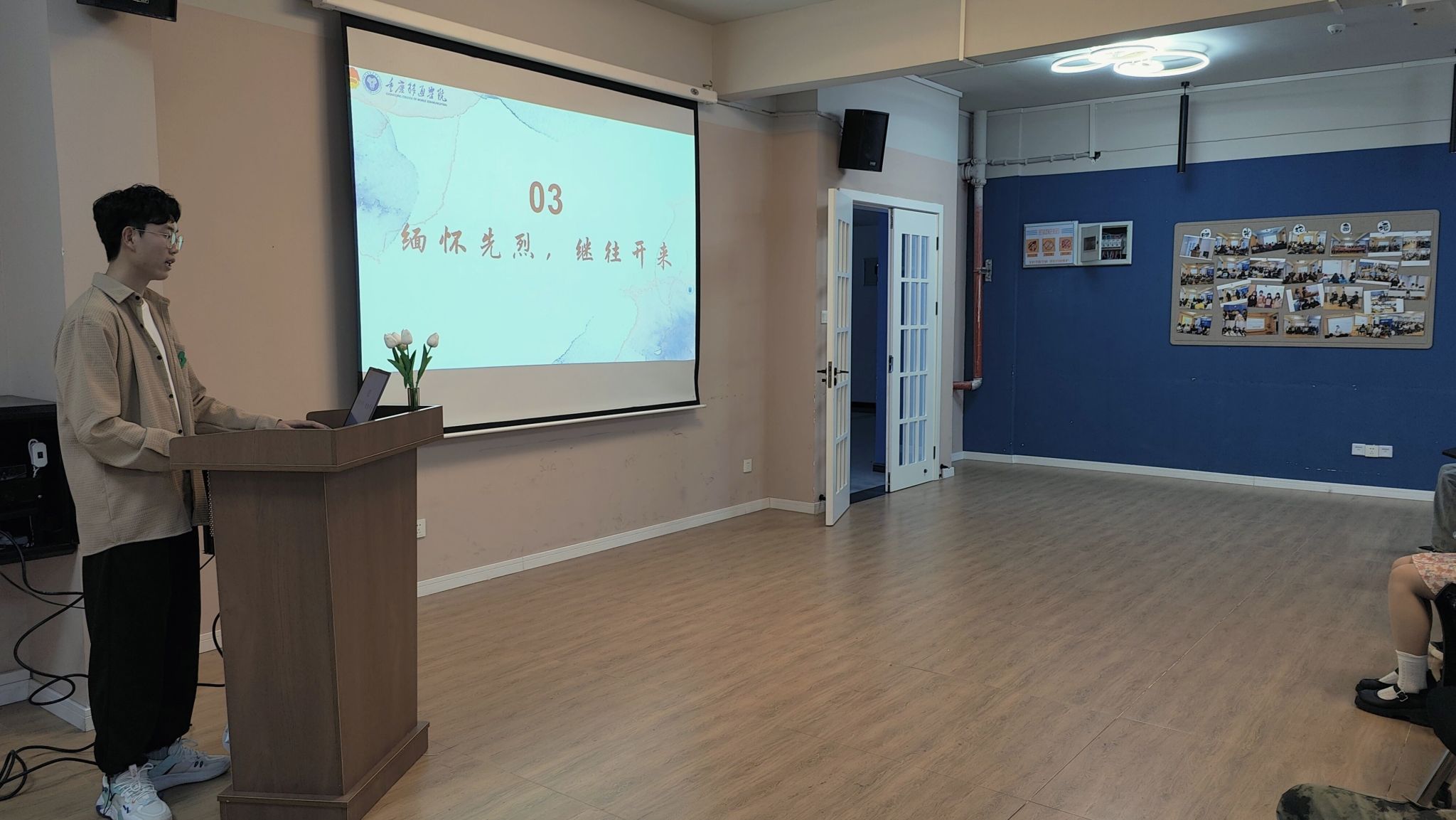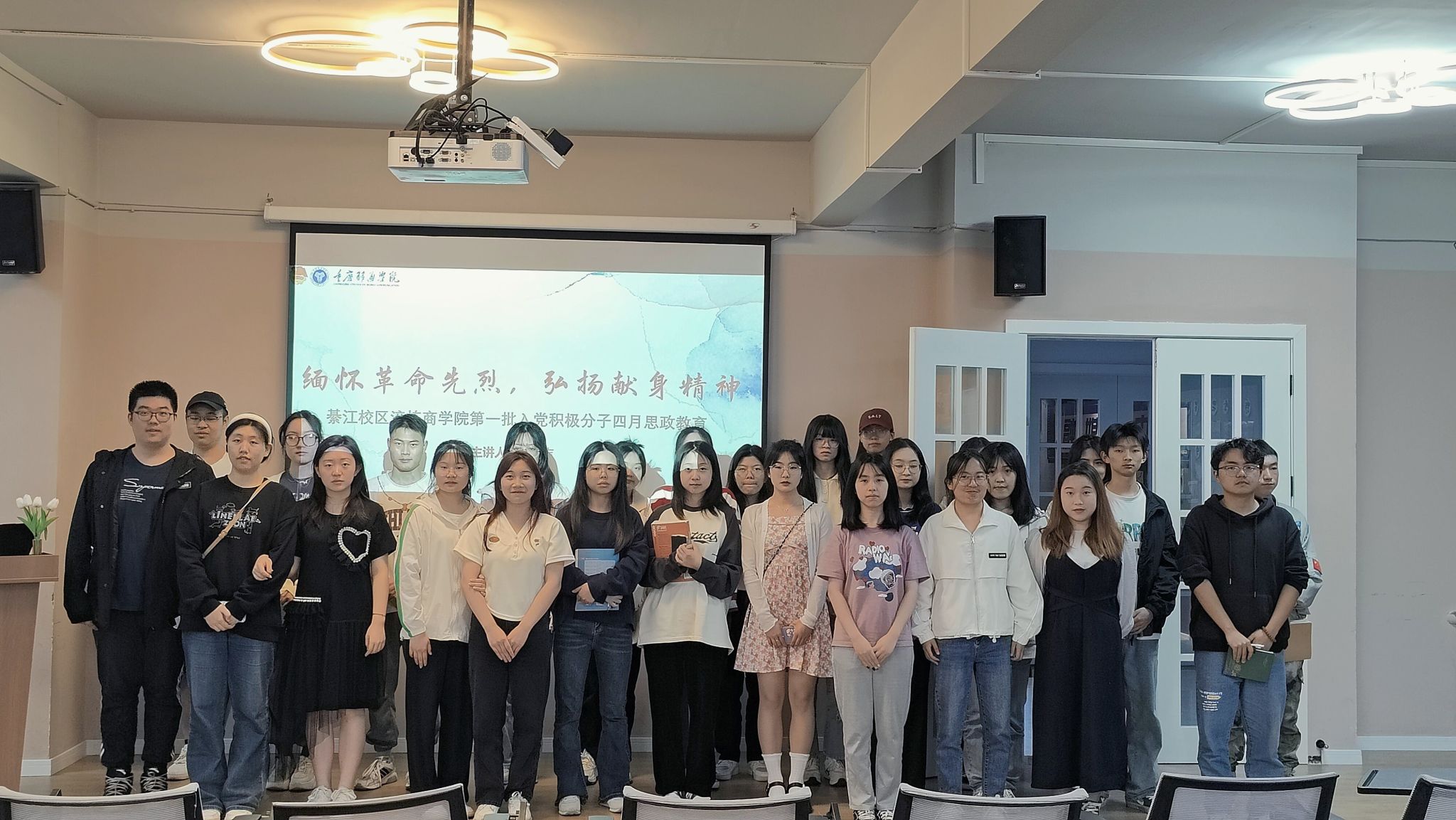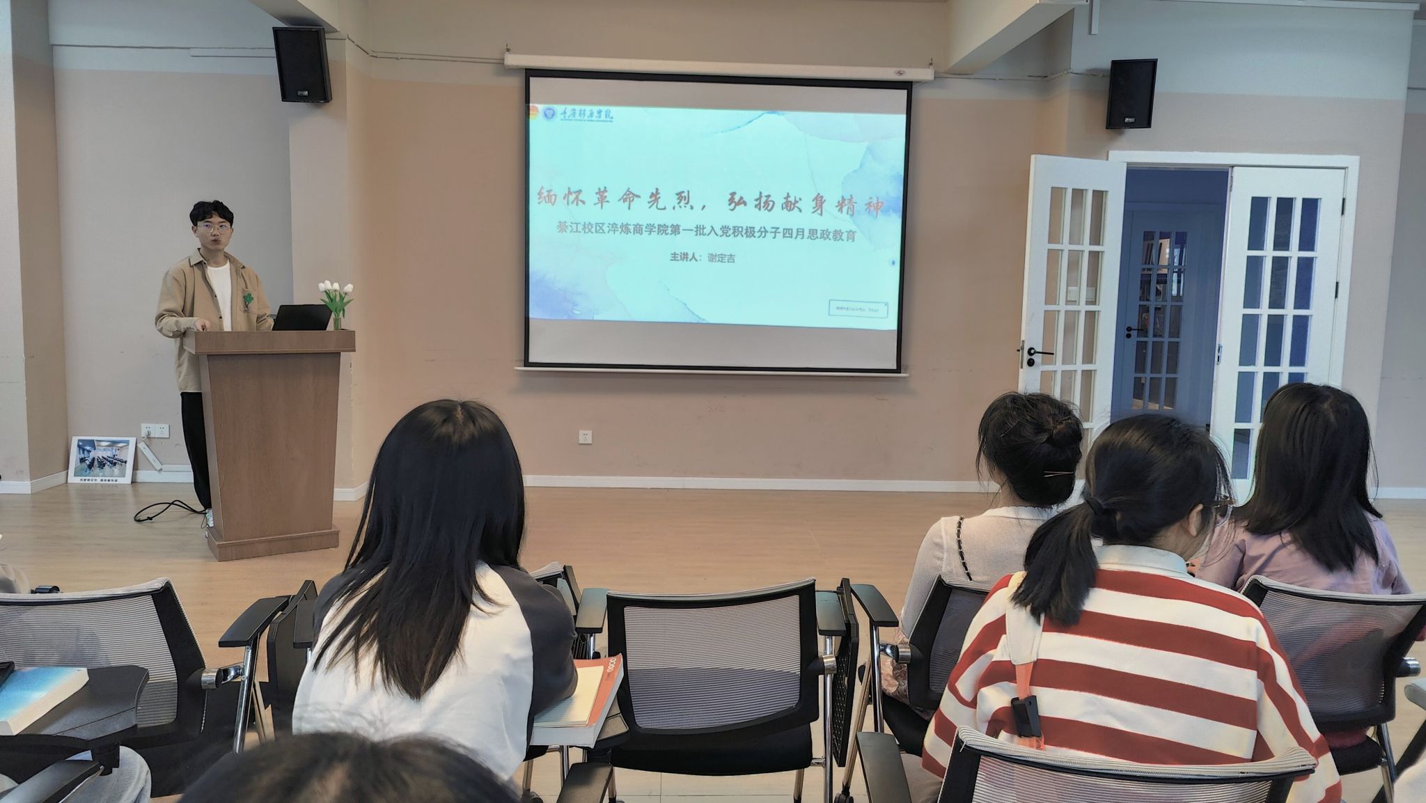为加强入党积极分子的红色观念,缅怀革命先烈,弘扬爱国主义精神,推动爱国主义教育,引导入党积极分子树立正确的世界观、人生观、价值观,并从中受到深刻的思想政治教育,淬炼·国际商学院(綦江校区)第一期入党积极分子于4月4日13:00在綦河书院三号楼小石潭多功能室开展了以“缅怀革命先烈·弘扬奉献精神”为主题的思政教育活动。本次活动由入党积极分子谢定吉同学领学。