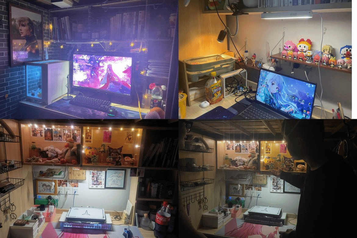 最后每个寝室对自己的“家”都有着各自的描述解说。綦河书院306的他们总结寝室文化,主要想拥有的就是一个舒适感,每个人的风格都不一样,朋克风、原始风、粗糙风、唯美风……电脑和配件的合理安装,更有科技感,更改桌面的颜色,让电脑和桌面相呼应,让视觉上更美观。横山书院453的她们强调寝室想要的是简约而不失温馨的小家,通过共同努力,小家有了自己的风格特色,在这里她们能共同分享乐趣、肆意挥洒青春风采,是对浪漫美好的追求。