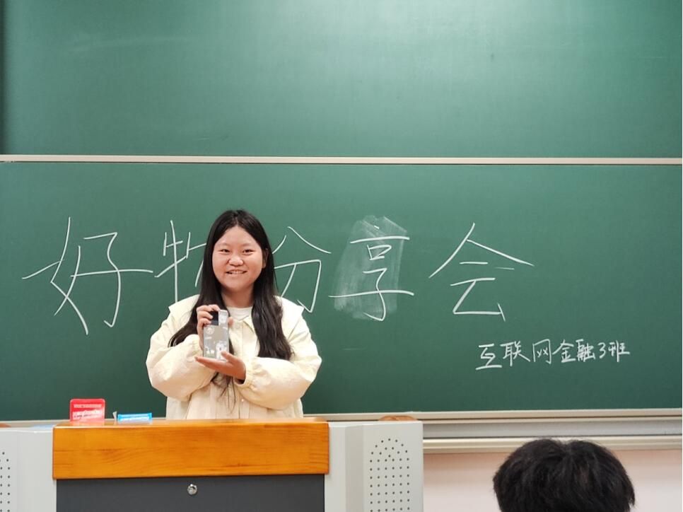 “碧玉孤根生在林,美人相赠比双金。”分享之于我们,有双倍快乐,也有情感触动,甚于肢体交流,是心灵的触碰。互联网金融3班的同学们举行好物分享会,将同学们高性价比的好物互相分享,共同营造良好的班级氛围。江南无所有,聊赠一枝春。在分享的过程中,同学们收获了好物,也得到了口才提升,大家通过推销的方式吸引同学们“买单”,线下带货大会得到大家实名点赞好评。“学会分享他人的快乐,自己也会收获到快乐;学会分享他人的鲜花,自己也会收获到一路芬芳。”