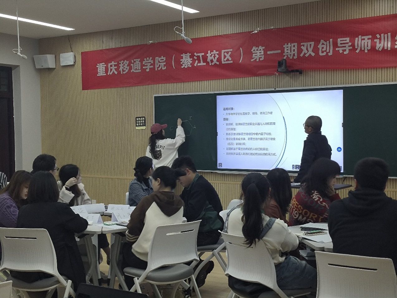 为加强綦江校区就业创业教师团队建设,全面提升就创教师授课能力及专业指导水平,系统地赋能从事相关工作的老师,綦江校区就创中心于3月29-30日,组织举办了綦江校区第一期“双创导师训练营”。此次训练营邀请到了重庆“志于学”科技有限公司总经理、北京师范大学教育学博士江新和新未来双创教育研究院院长、中国国际“互联网+”大学生创新创业大赛专家评委、国金项目辅导专家晁劲鹏为綦江校区的老师们授课,共有40名老师参加了此次培训。