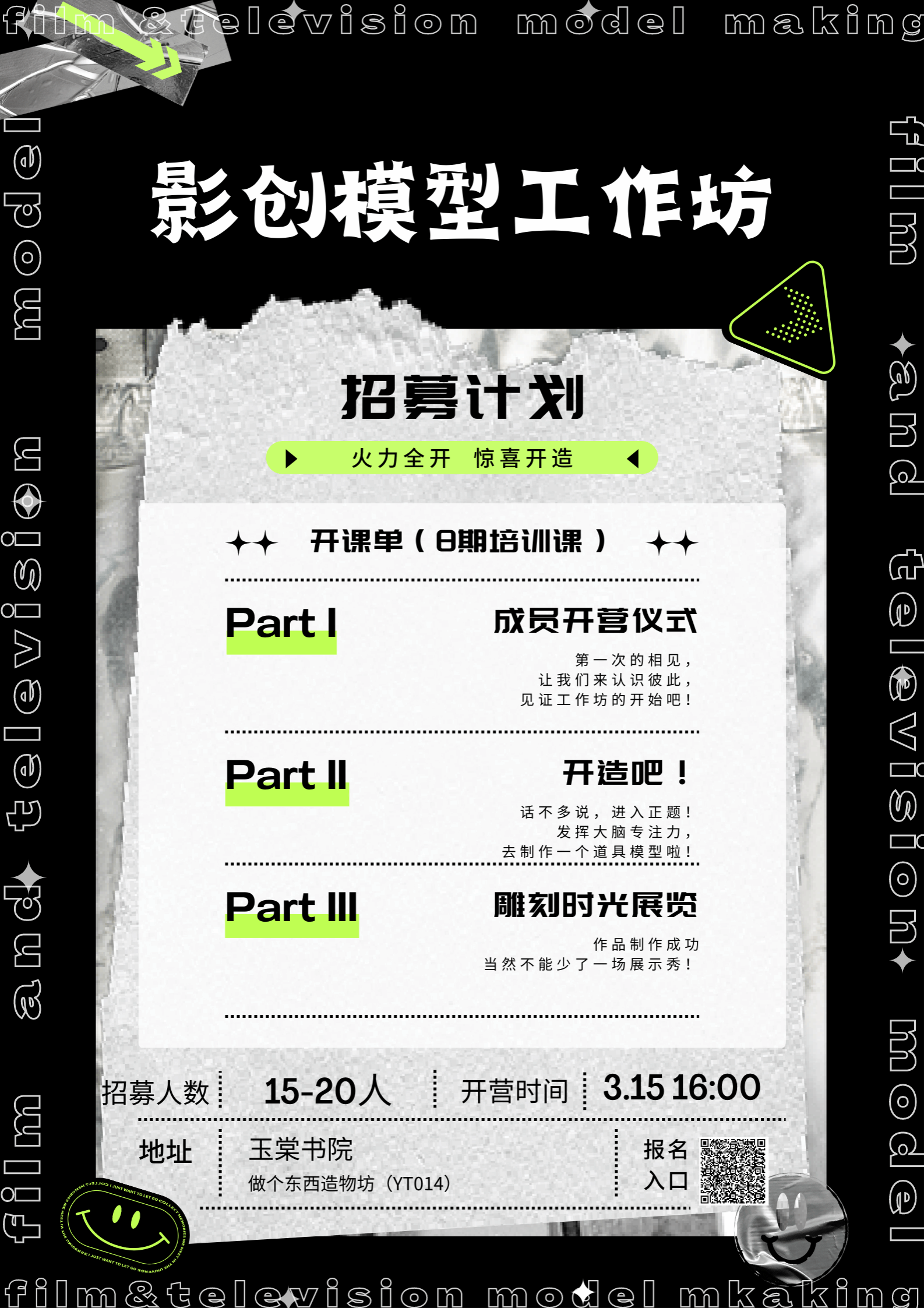 本学期,电影评论中心与玉棠书院立足板块特色文化联合开办“影创模型工作坊”,工作坊的培养模式旨在以发展“学生兴趣”为中心,在“玩”的过程中通过手工制作与实践的方式来锻炼学生的创造能力,培养学生的聚焦思维,让学生在一次次的实践过程中感受银幕背后的艺术是如何在一支“笔”,一支“刻刀”之下创造的。