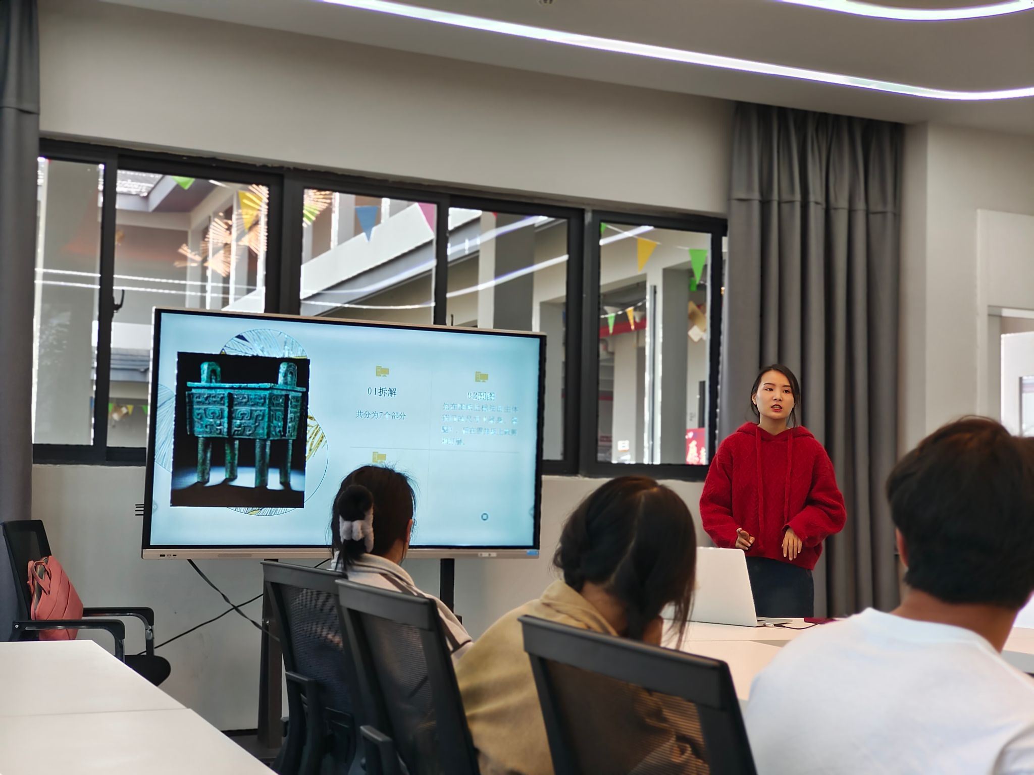 3月29日,工作坊正式进入了青铜鼎的模型制作阶段。同学们在谭老师的带领之下首先对模型的比例进行了规划设计,再仔细地观察了图片上青铜鼎的构造之后,首先选择了制作模型的“耳部”和“腿部”。
