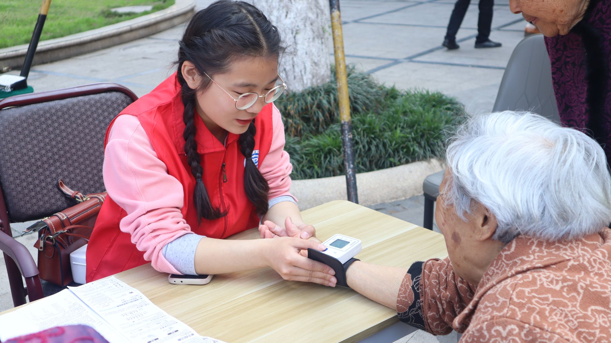 随着音乐响起,志愿者们把精心准备的《国家》、《茉莉花》、《仰望星空》等节目展现给面前的爷爷奶奶,用手语操传递出温暖情怀,用歌声表达对爷爷奶奶的美好祝福。现场还有小朋友自愿起参与其中表演手势舞,小朋友的加入让这份温情传递更加有深度和延展度。志愿者还为老人们提供了测血压的服务,志愿者们在测量血压是也是发现老人们部分存在高血压等问题,志愿者也是关切的叮嘱:合理用药,清淡饮食。那一句句温暖的话语,一声声细心的嘱咐,让人备感温暖,也让老人们深深地感受到来自社会对他们的关爱。