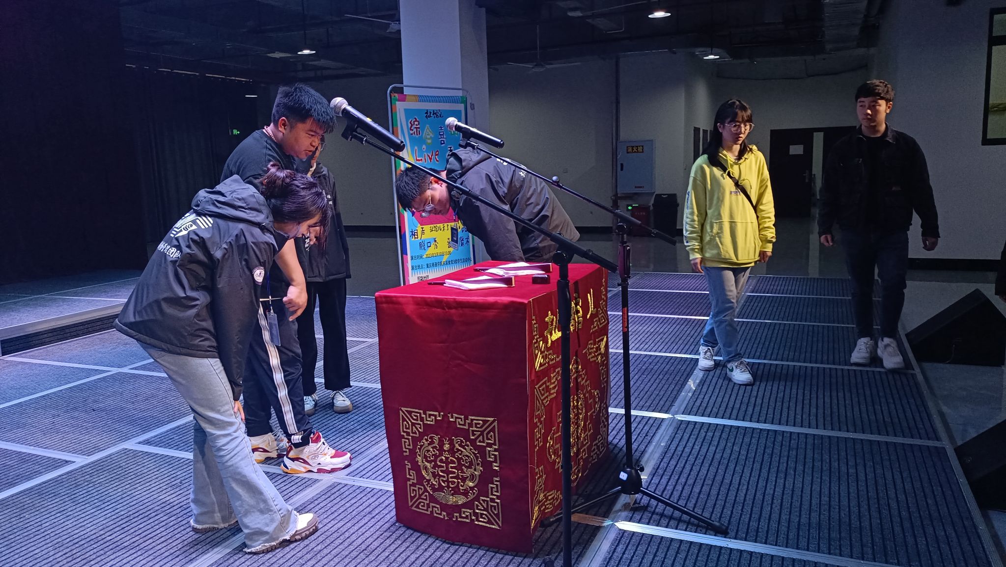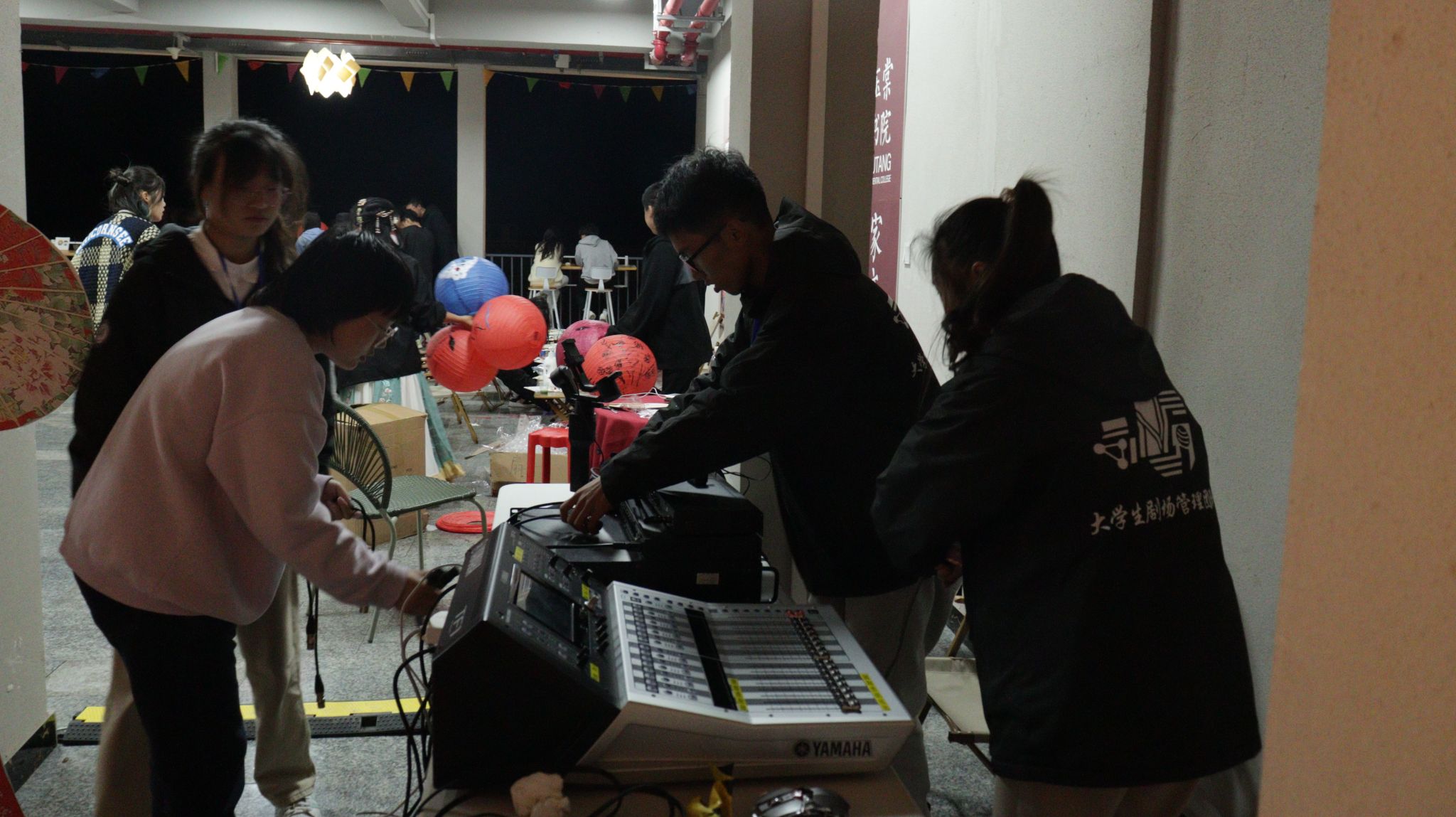 3月24日,天气微凉。“光影盛宴汉的玉棠”玉棠花灯节、第42届“校园之春”文化艺术体育活动之街舞大赛两个值得回味的活动都在这天开展起来。生动的表演氛围,少不了大学生剧场管理团队的助力加持,站在第一线为活动服务。