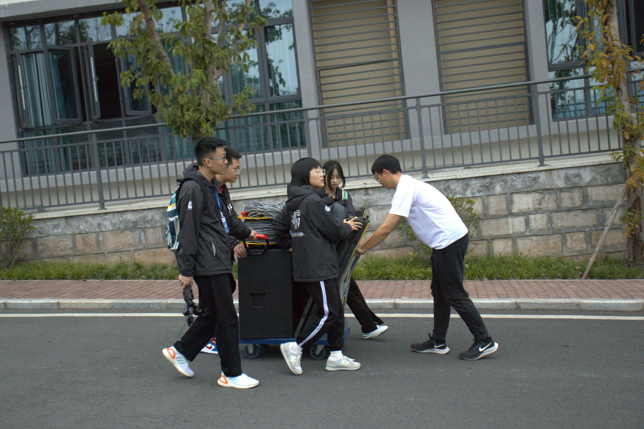 3月5日,天气晴朗。24.5个小时的幕后刻苦工作,都凝结在2小时的活动演出.大学生剧场管理团队在这天上午可要干一件大事——协助2022级学生军训汇报表演暨总结表彰大会。面对成千人,团队成员将注意力拉至最高,一次次在脑海中回想流程、操作、细节。团队成员汗水还未擦干,就立马装好设备、拉起推车、布置线路、播放音乐。第十二届女生节沐时代春风·秀女生风采活动在图书馆广场马上开始啦!