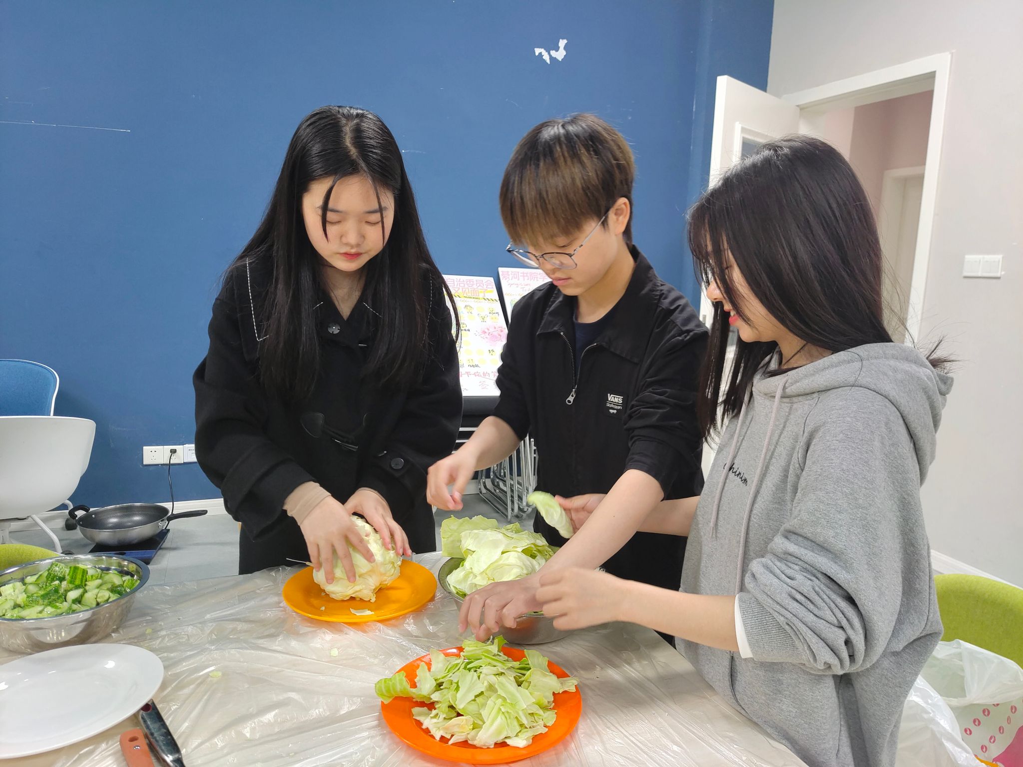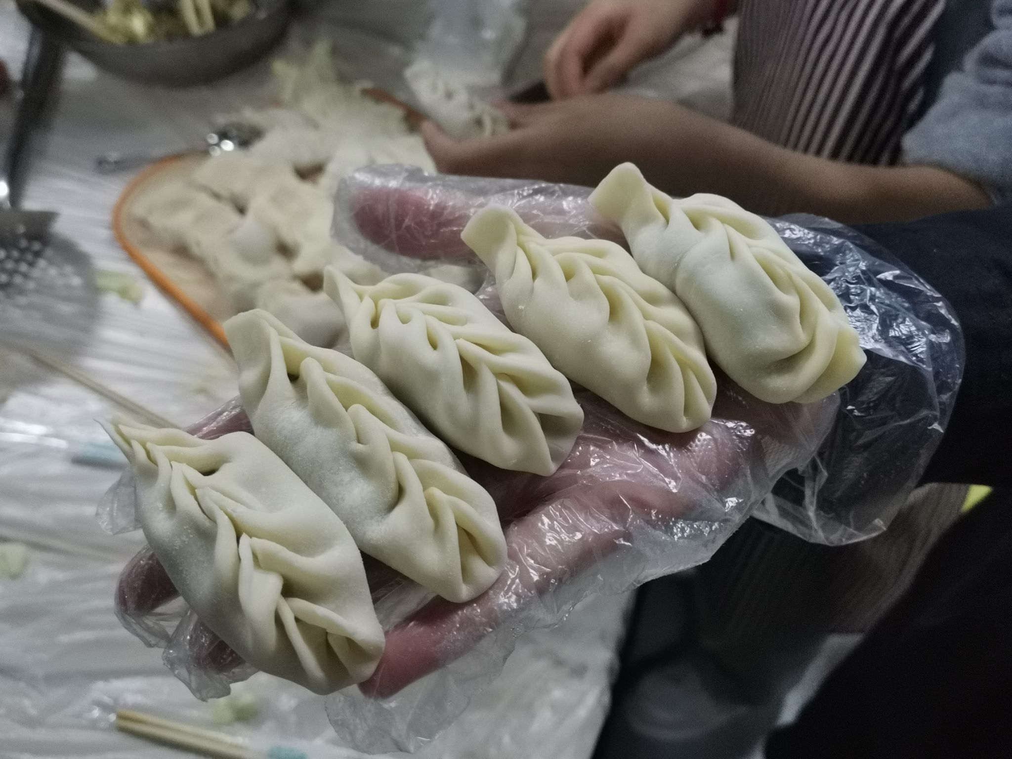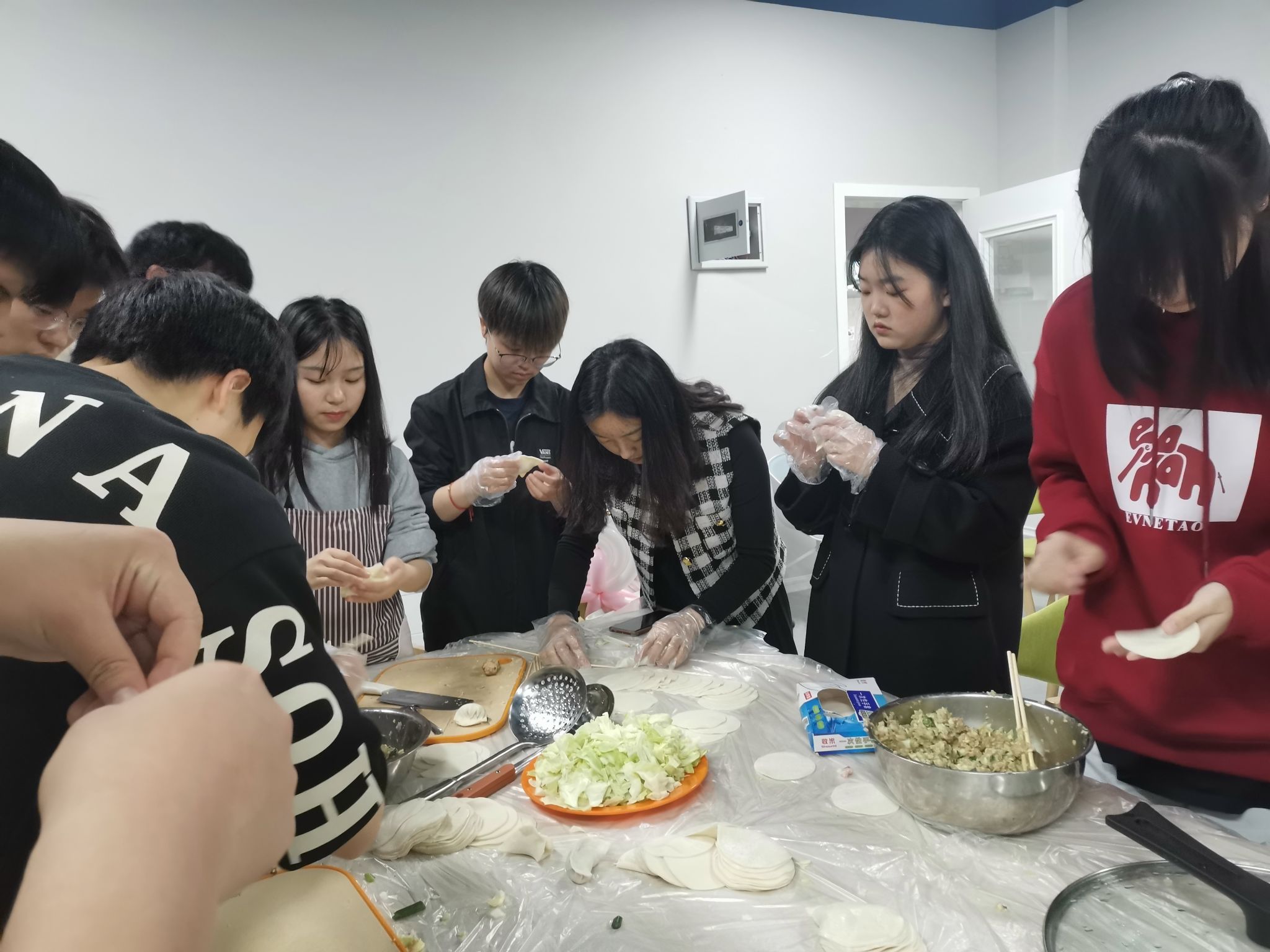 下午四点,大家陆陆续续来到了活动地点。为了调动大家动手积极性,更好的投入活动中,两位老师率先打破沉默,向同学们讲解今天活动流程,并动手开始铺桌布,大家见状,纷纷行动起来,洗菜、切菜、清洗厨具、拌馅儿…一切准备完毕,大家齐动手,开始包起了饺子。