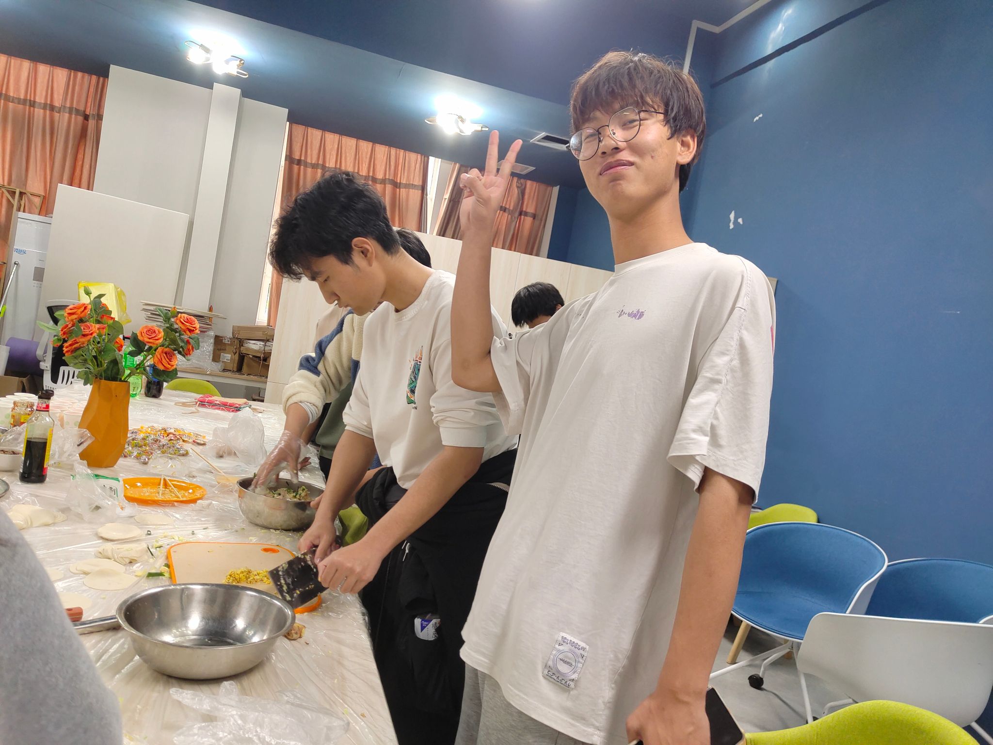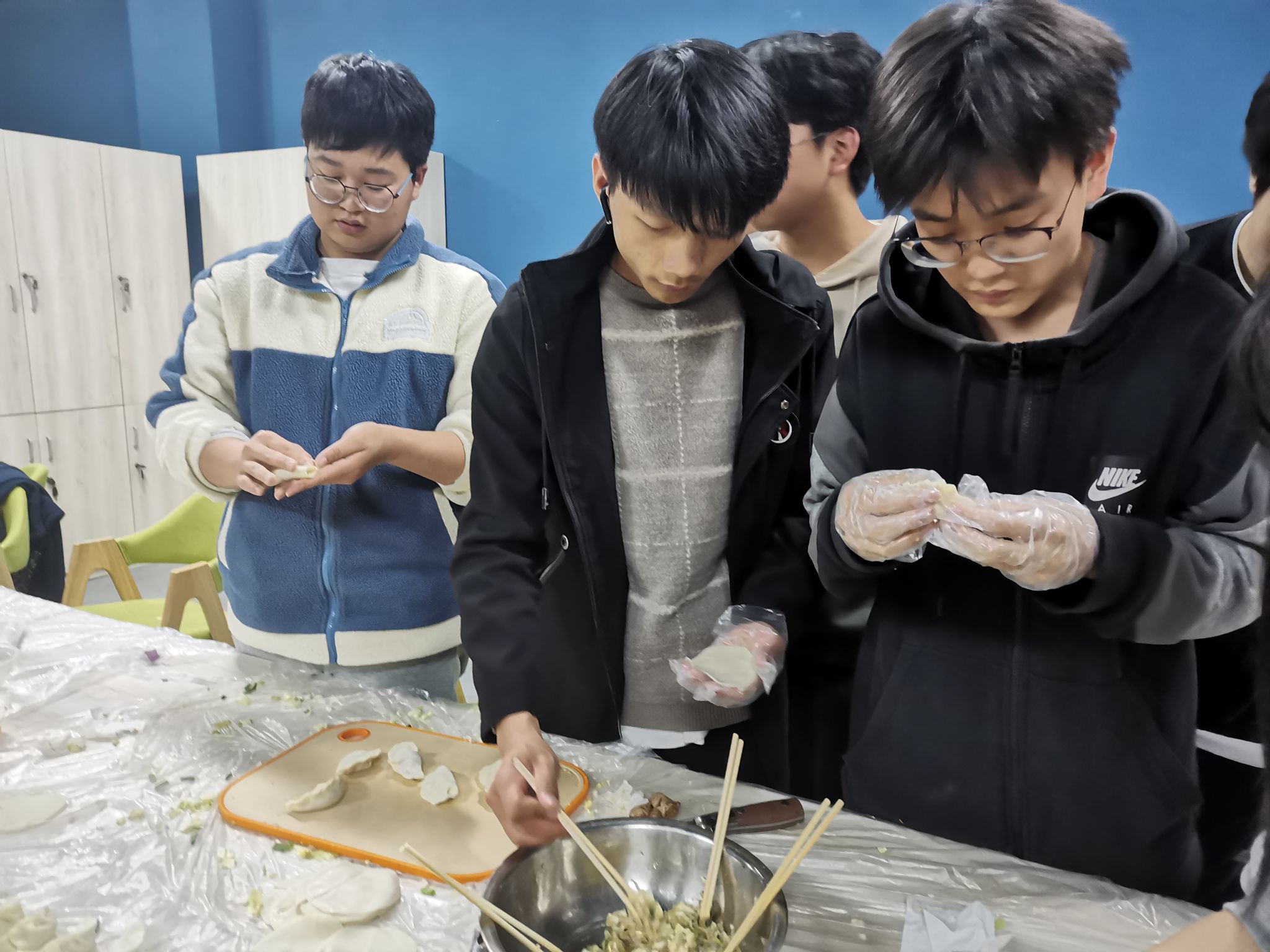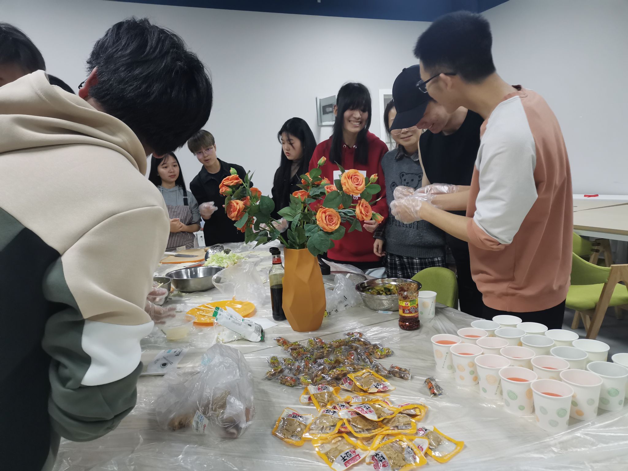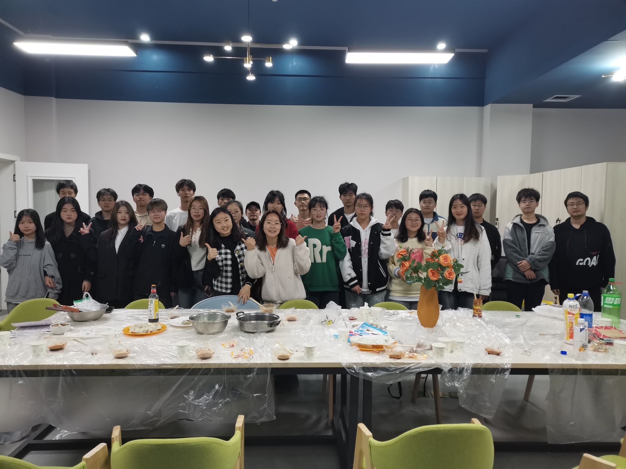 下午四点,大家陆陆续续来到了活动地点。为了调动大家动手积极性,更好的投入活动中,两位老师率先打破沉默,向同学们讲解今天活动流程,并动手开始铺桌布,大家见状,纷纷行动起来,洗菜、切菜、清洗厨具、拌馅儿…一切准备完毕,大家齐动手,开始包起了饺子。