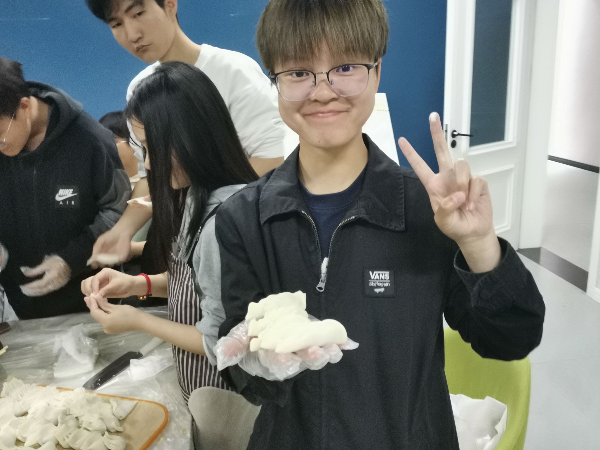 活动现场,为了增进学生间的交流,同时活跃现场气氛,马慈老师建议大一的学弟学妹一组,大二的学长学姐一组,开启包饺子比赛。大家同意之后,纷纷开启高速,不一会儿各种形态各异、造型不一的饺子就呈现在了大家面前,邱祝老师还教大家包花式水饺,大家跟着学,包出来的饺子也有模有样。