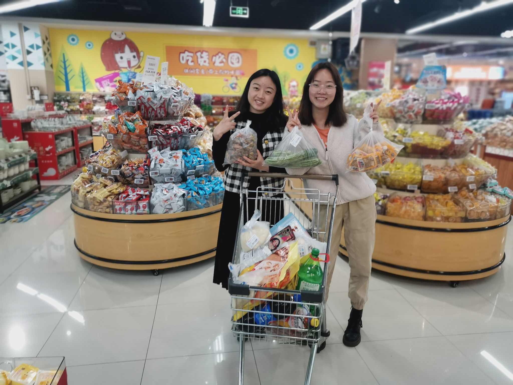 为了本次饺子活动大家能吃到最新鲜的食材,活动当天中午,邱祝和马慈老师趁午休时间,马不停蹄前往超市采购新鲜食材,并贴心为学生们准备小零食。