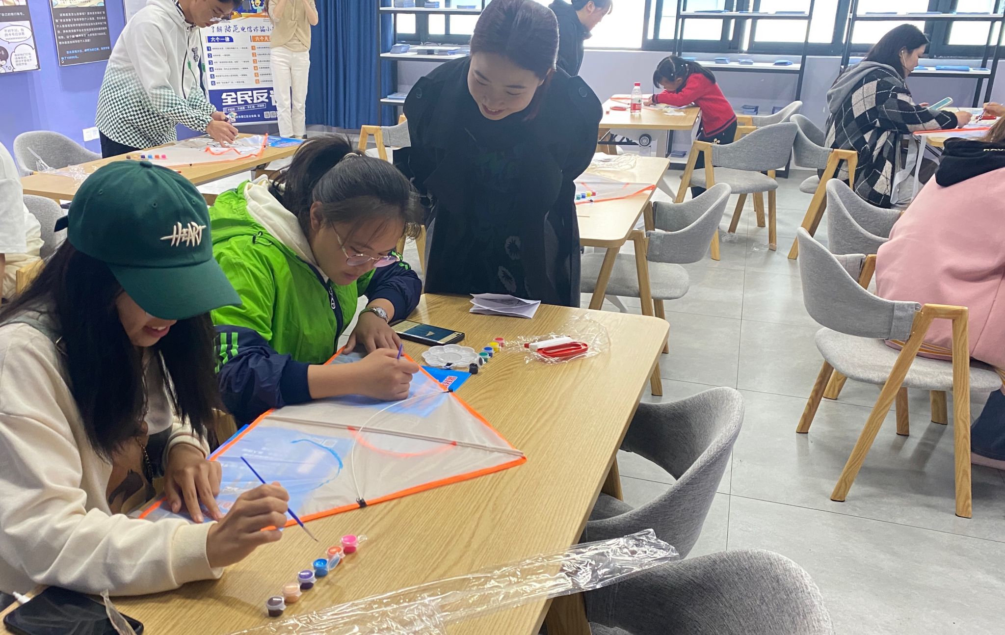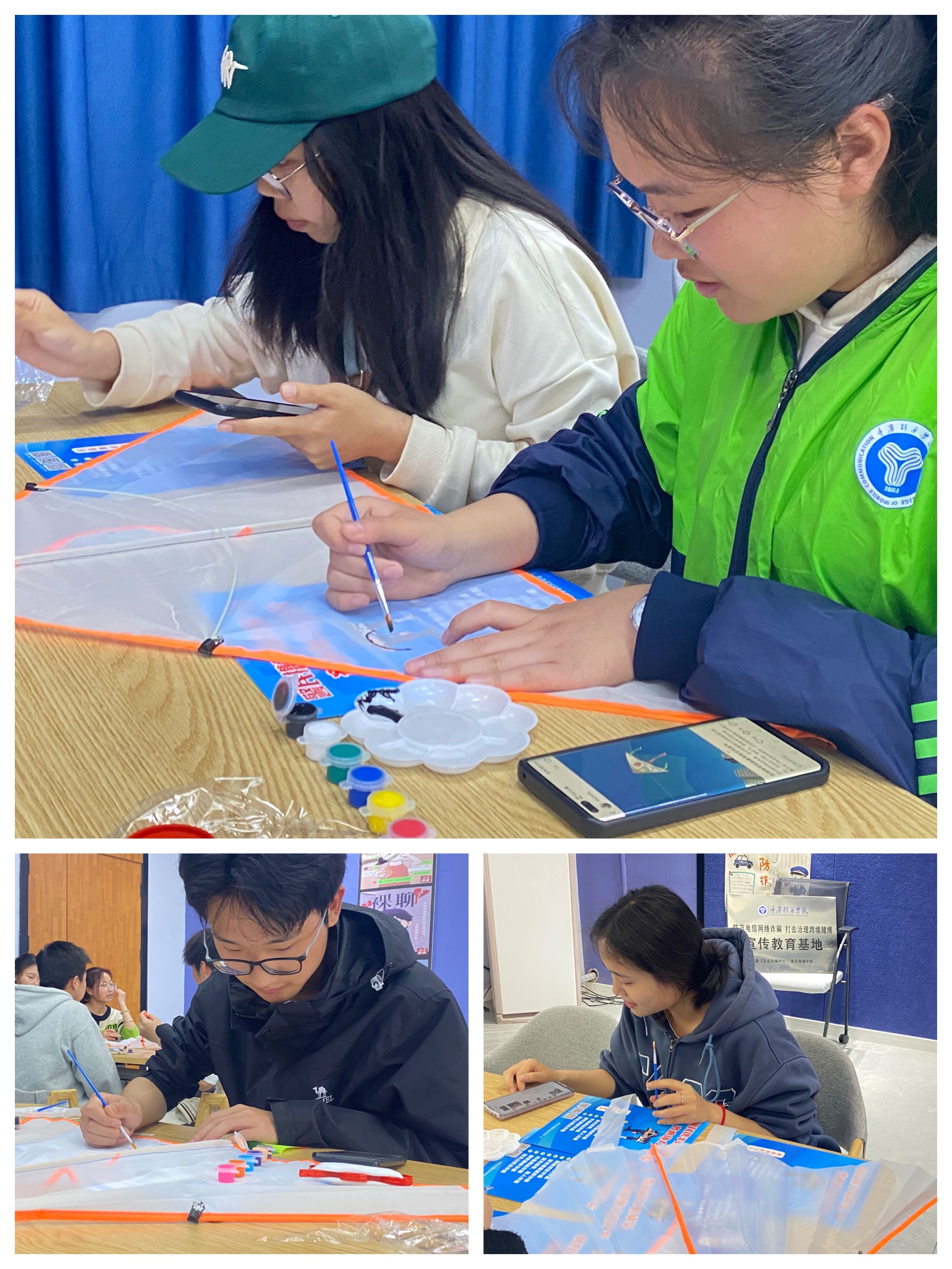 初春时节,乍暖还寒,万物复苏,百花争鸣。这便是春天,是赏花的季节,是放风筝的季节。为培养学生的审美能力、协作精神和创新意识,提高校园生活的乐趣,3月24日,在綦河书院2号楼的南渊创写活动室举办了手绘风筝的活动。本次活动由王陈、李旎、刘雪影三位异科导师组织,2022级管理工程与科学类2班、数字经济4班、电子信息类志向1班的学生参加。