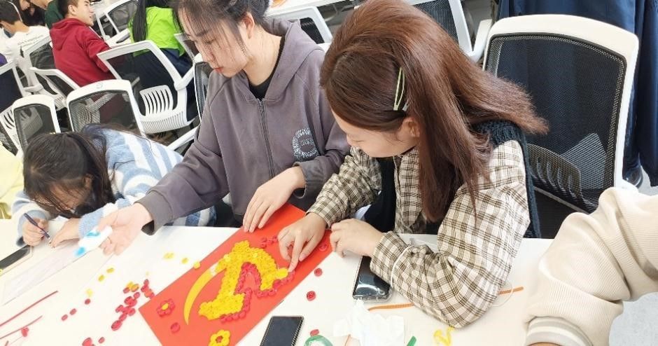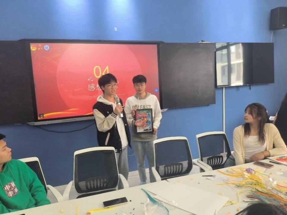 在同学们创作结束后,一幅幅精美的衍纸画诞生了,一幅幅衍纸作品,既展现出了纸艺的美感,更展现了出同学们对美好生活的向往。他们依次上台展示着作品与其中饱含的情感,不论是党徽,还是航空,又或者是天安门,他们用都用手中的作品诉说着他们心中的情感。