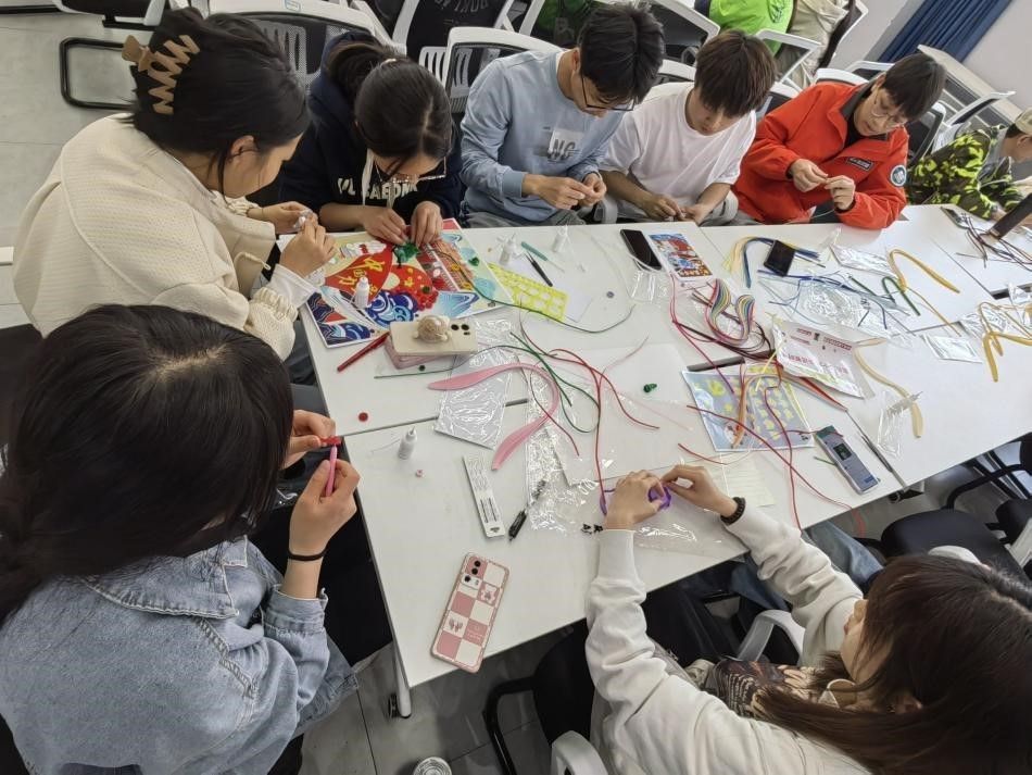 最后,同学们进行合影留念,纪念这充实而又富有意义的一堂课。通过实践的方式学习和传承了传统艺术文化,同学们在繁忙之余体验了衍纸画带来的快乐和宁静,也感受到了衍纸创作带来的成就感。