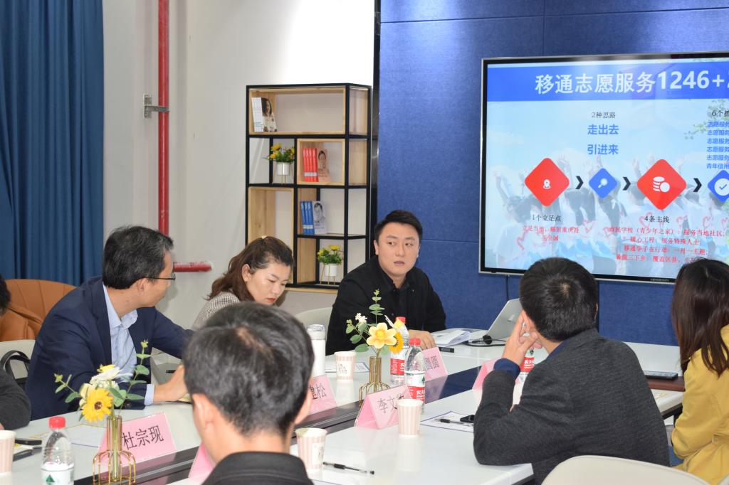 随后,我校团委副书记蔡星宇从社团品牌项目打造、志愿服务体系搭建、艺术教育实践和竞技体育开展路径等方面对我校完满教育育人理念进行了解读。他提到,“四位一体”是我校特色育人举措,其中社团主要以兴趣为导向,立足学生成长共性需求,同时作为重要发力点,对话国赛、市赛;志愿服务则立足“1246+移通志愿服务2.0+新体系”,让学生在志愿服务中传递责任、表达态度;在艺术方面,以“两节”为中心,“多赛”为羽翼开展活动,主张原创,志在打造“非艺术院校里面最艺术的大学”;在竞技体育方面,也是设立中心部门统筹工作,聘请高水平运动员到校执教,通过多层次、多维度活动开展,帮助学生健全体魄,塑造精神,力求打造“非体育院校里面最体育的大学”。
