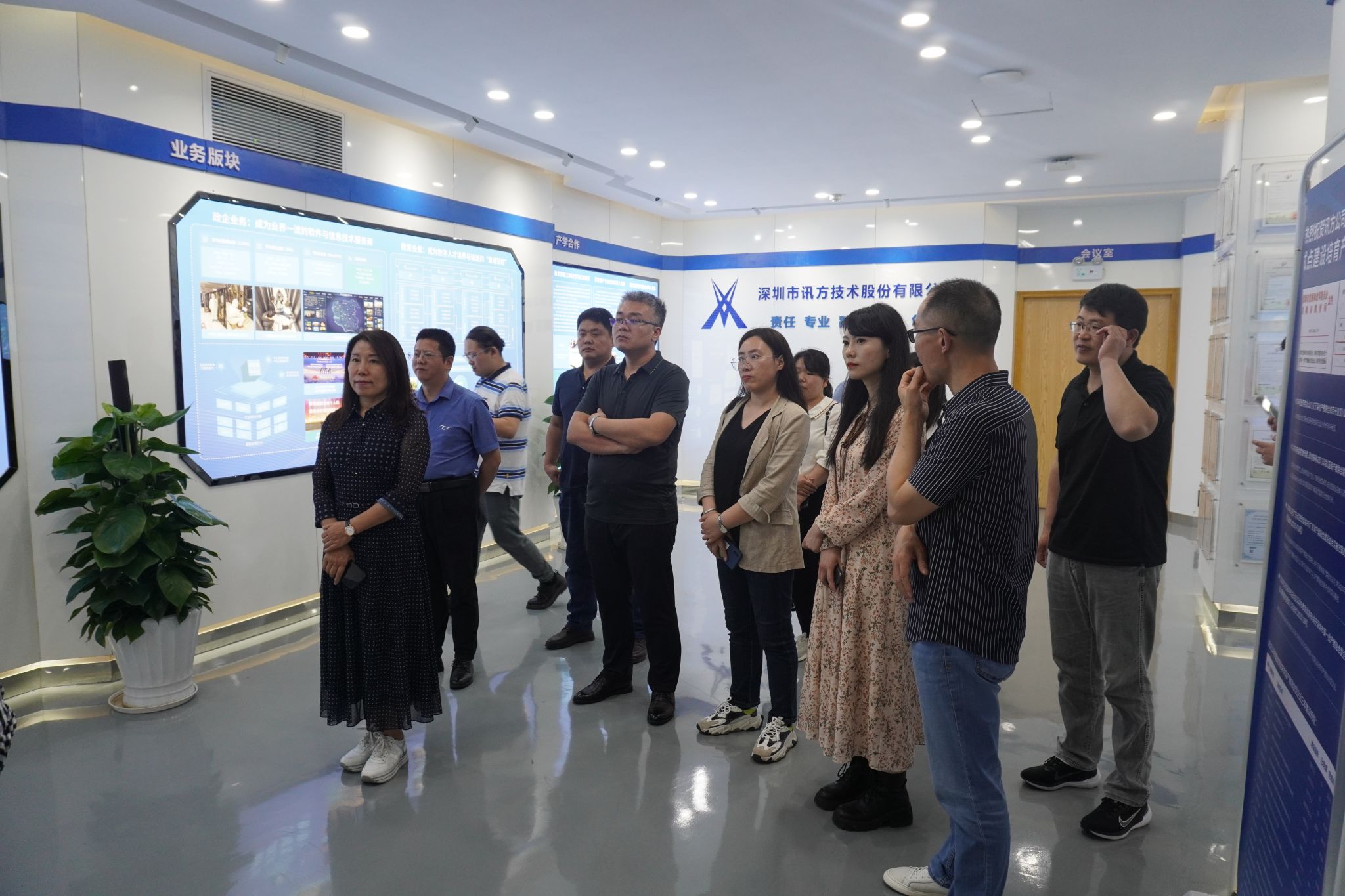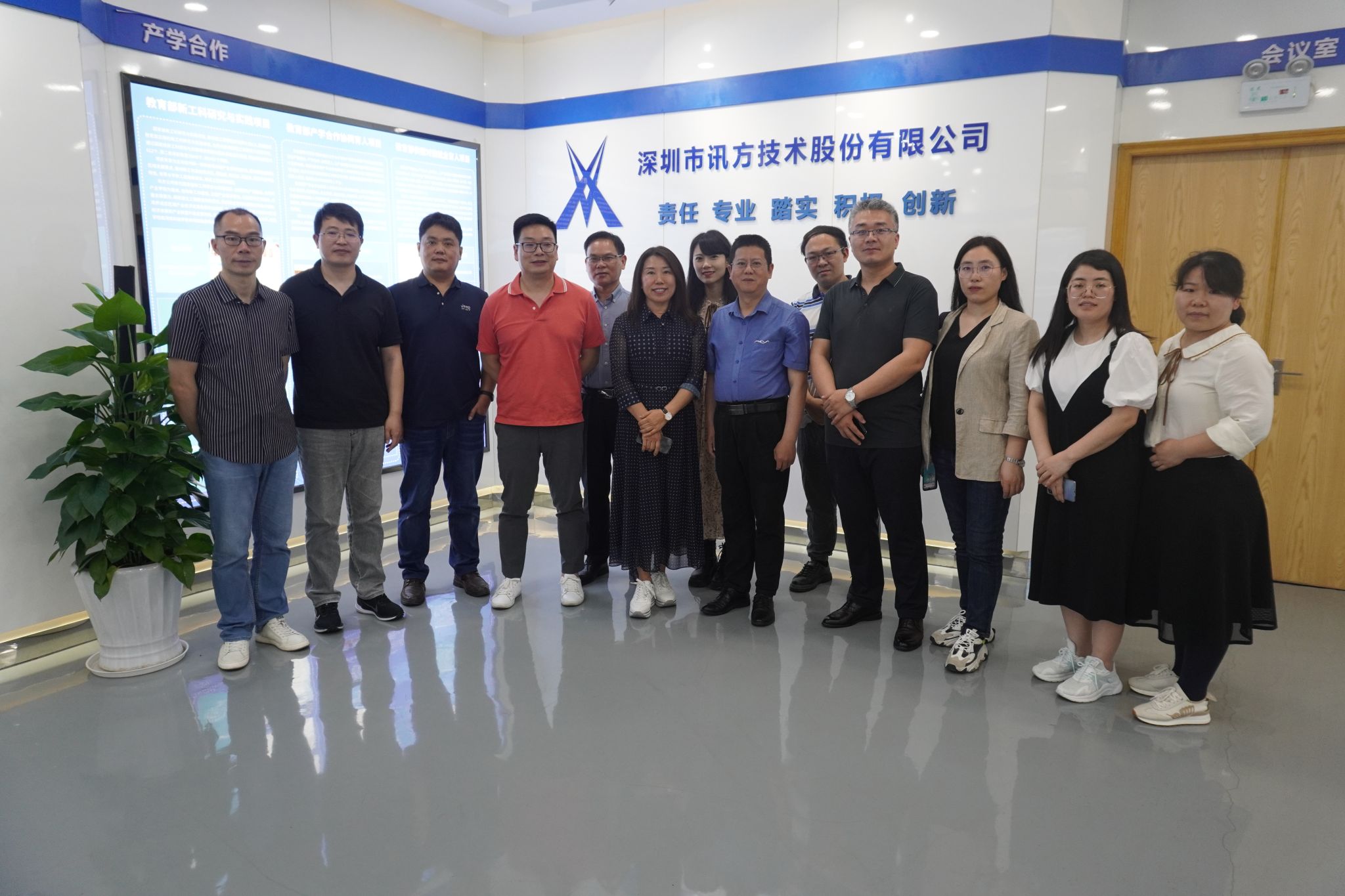 行程第二站,团队一行来到讯方技术股份有限公司,听取了讯方公司发展历程、校企合作成功案例、可以为中国新商科教育集团提供的解决方案等,双方进行了详尽的研讨。