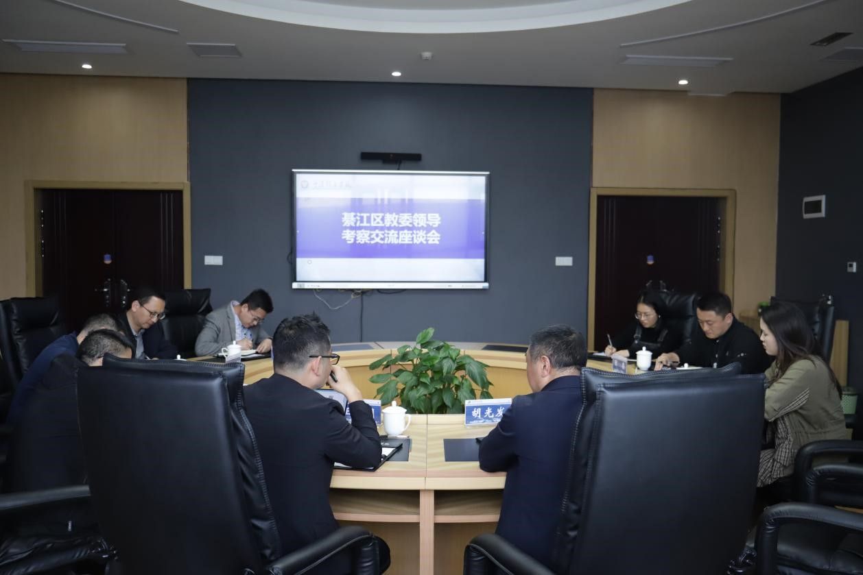 4月25日下午16时,綦江区教委副主任胡光发、綦江区职教中心副校长杨淋宇、綦江区教委体艺卫科周雪珂、綦江区职成教科陈应启莅临我校考察交流,常务副校长、綦江校区党委书记、管委会主任王永周,党政综合办公室、团委、数字媒体产业学院、品牌营销与新闻中心部门负责人参与座谈会。
