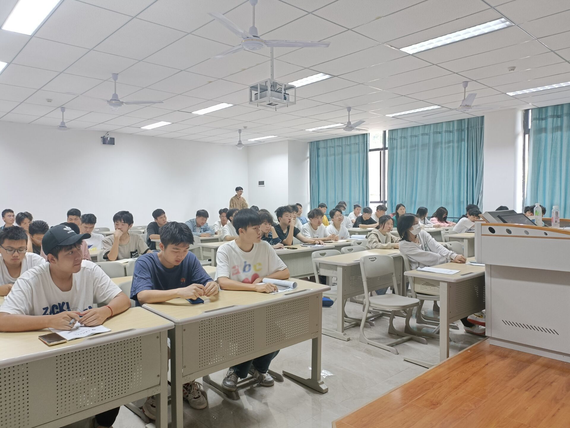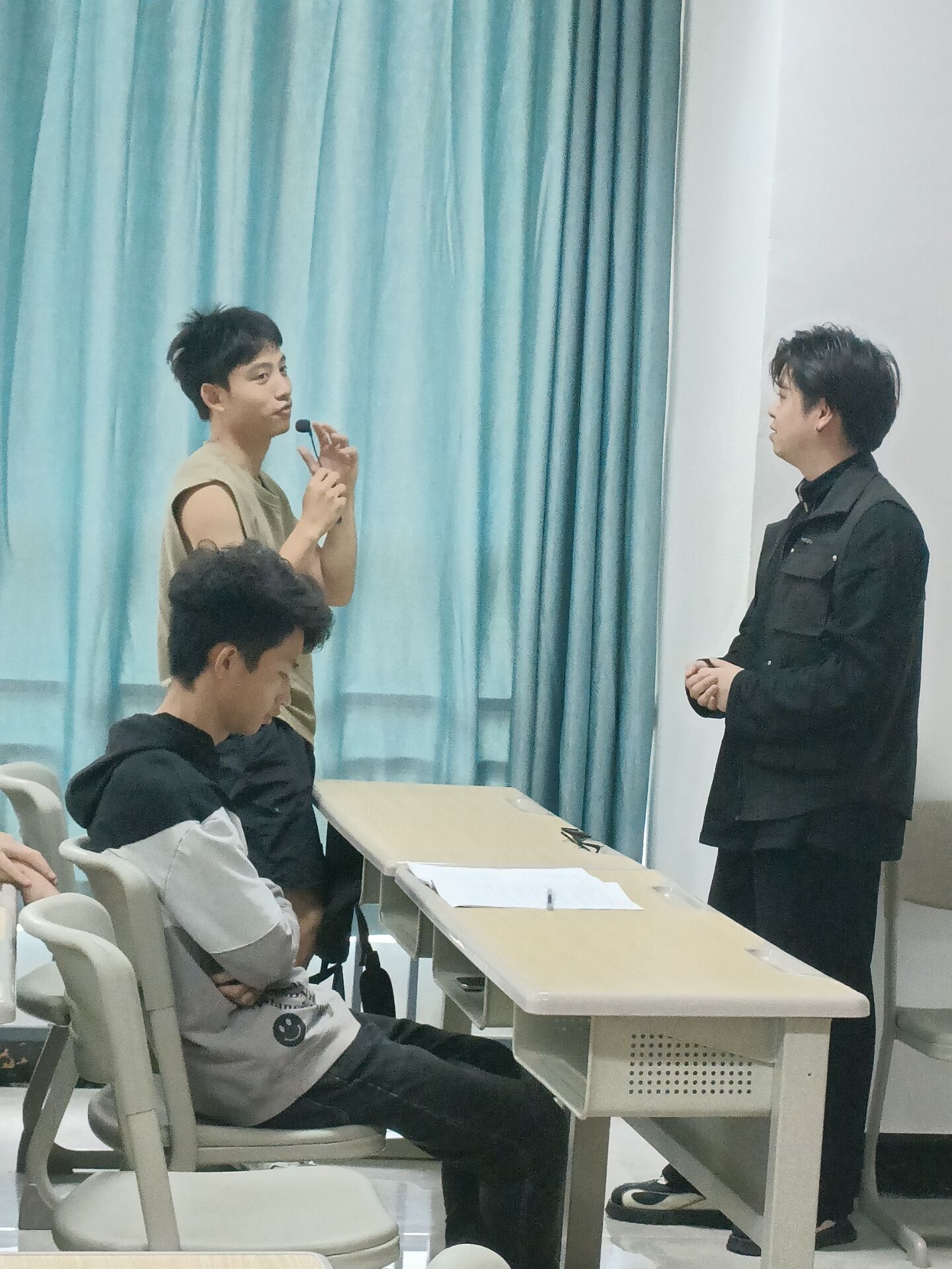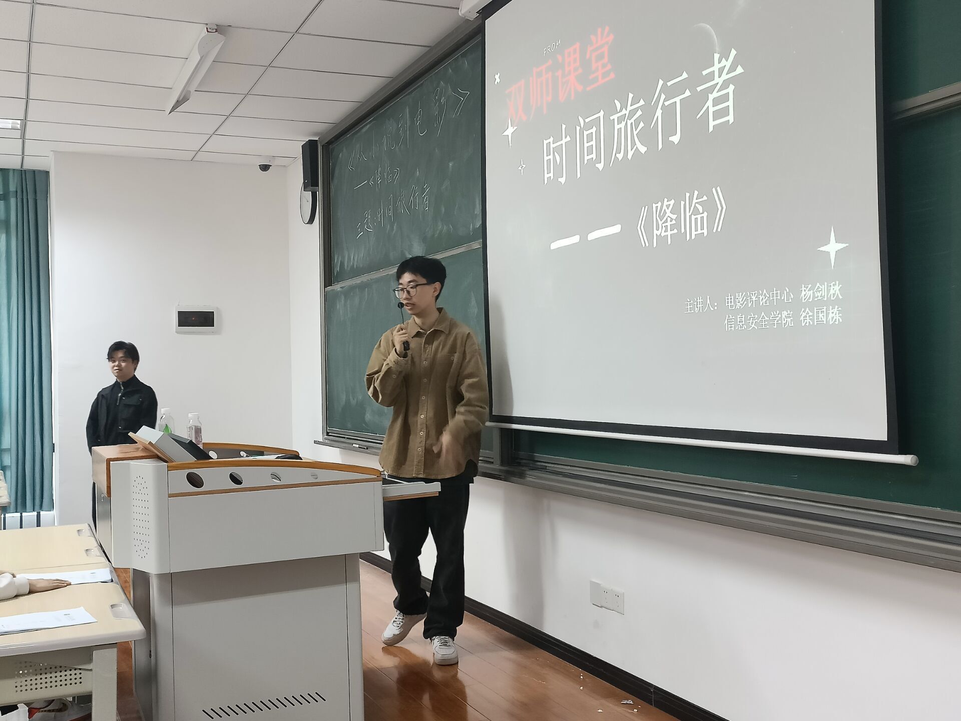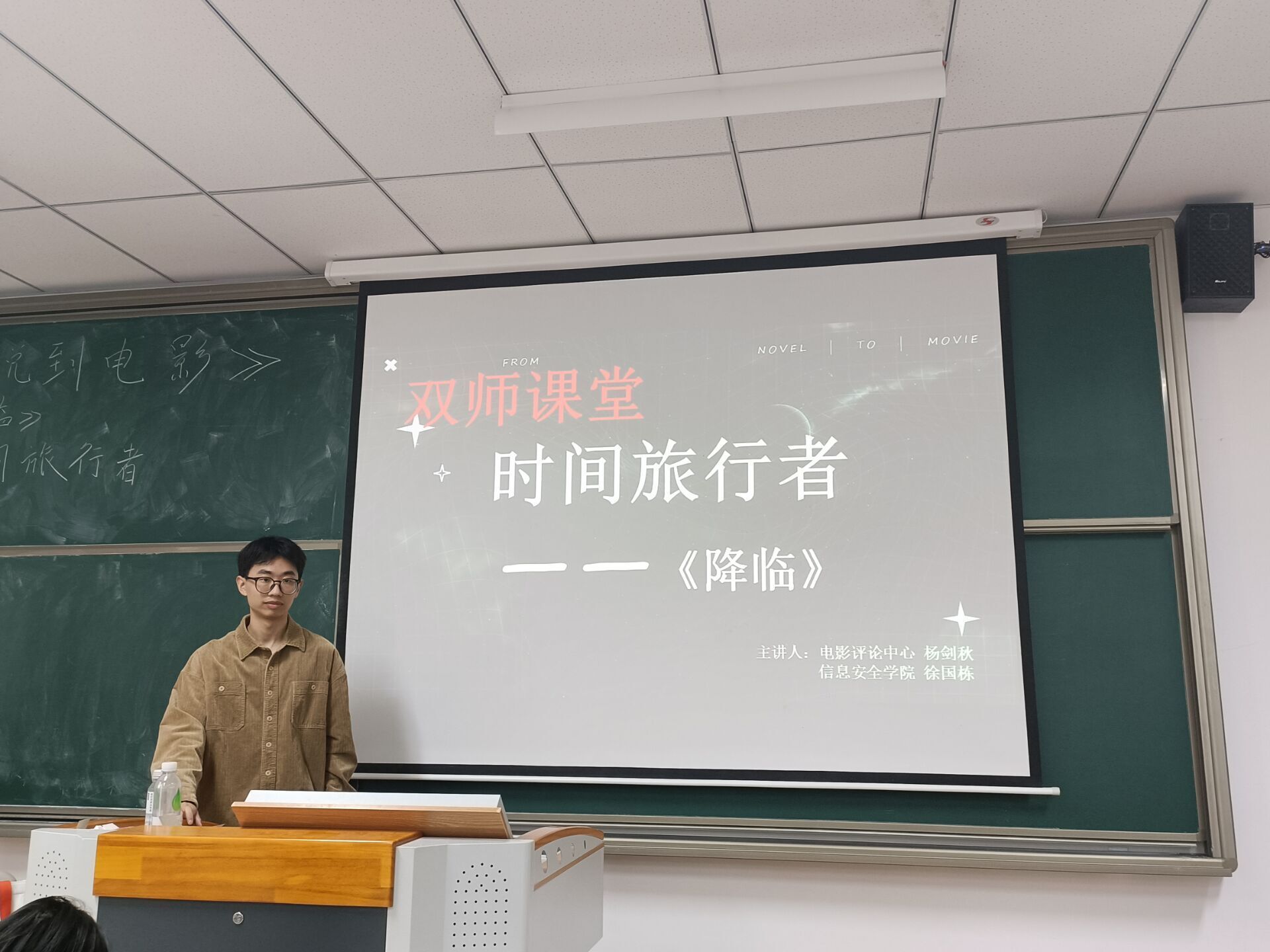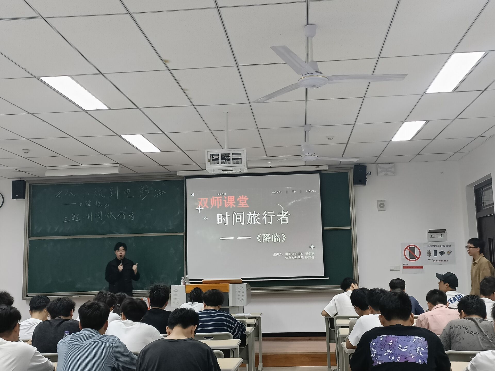 5月12日上午,2021级软件工程5、6班的同学早早走进教室,与以往不同的是,除了授课老师杨剑秋,还有来自信息安全学院计算机网络与应用的老师徐国栋,两位老师共同开展本次《从小说到电影》双师课堂。