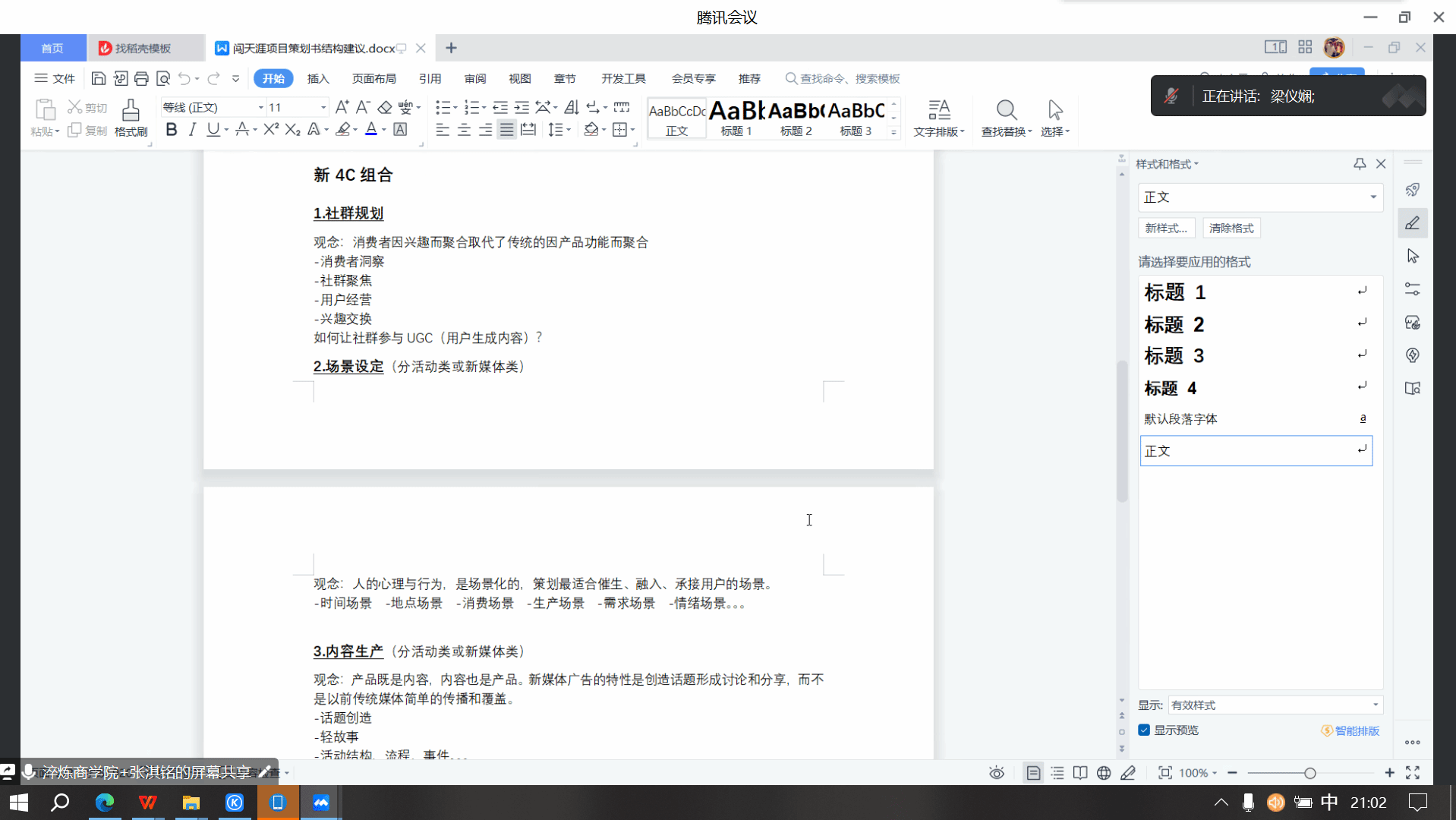 会议的最后部分,大家在线上进行了思想上的激烈碰撞,各抒己见,纷纷阐述了自己对于餐厅名字、后期工作的开展等方面的观点。在一番头脑风暴后,张老师为使后期工作顺利开展,对同学们再次进行了分组工作,并做了本次会议的最终总结:通过这个实战项目,相信大家能学会取长补短,在学习中成长,在成长中进步。