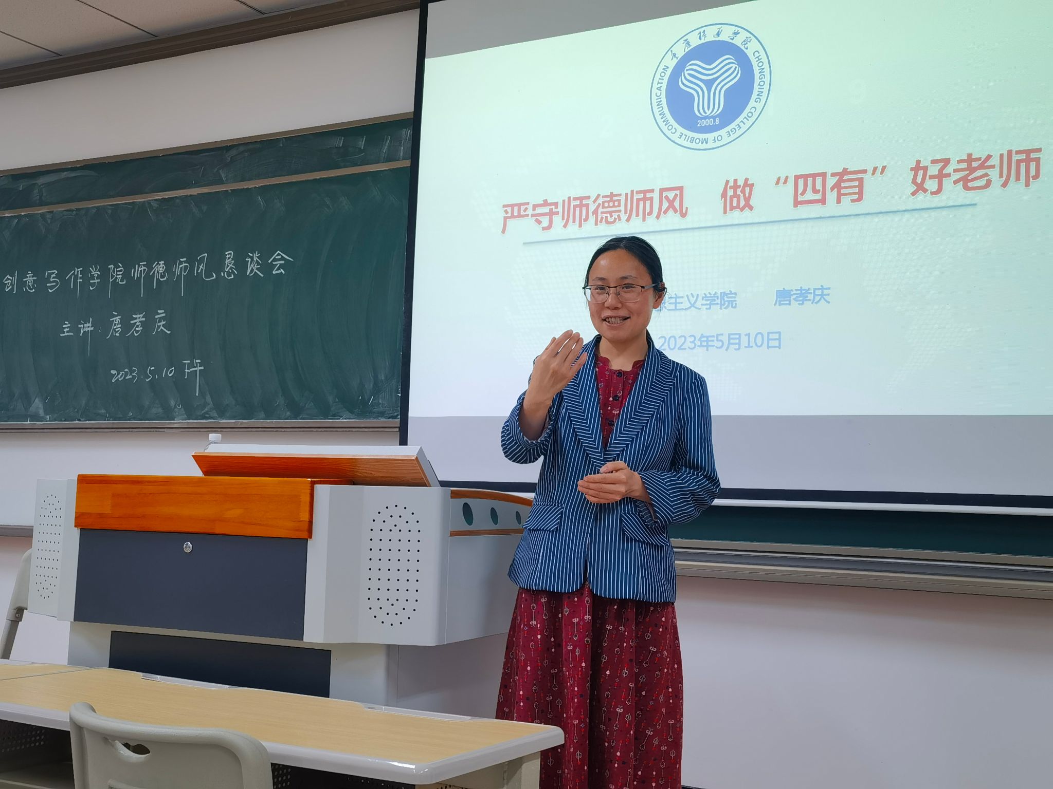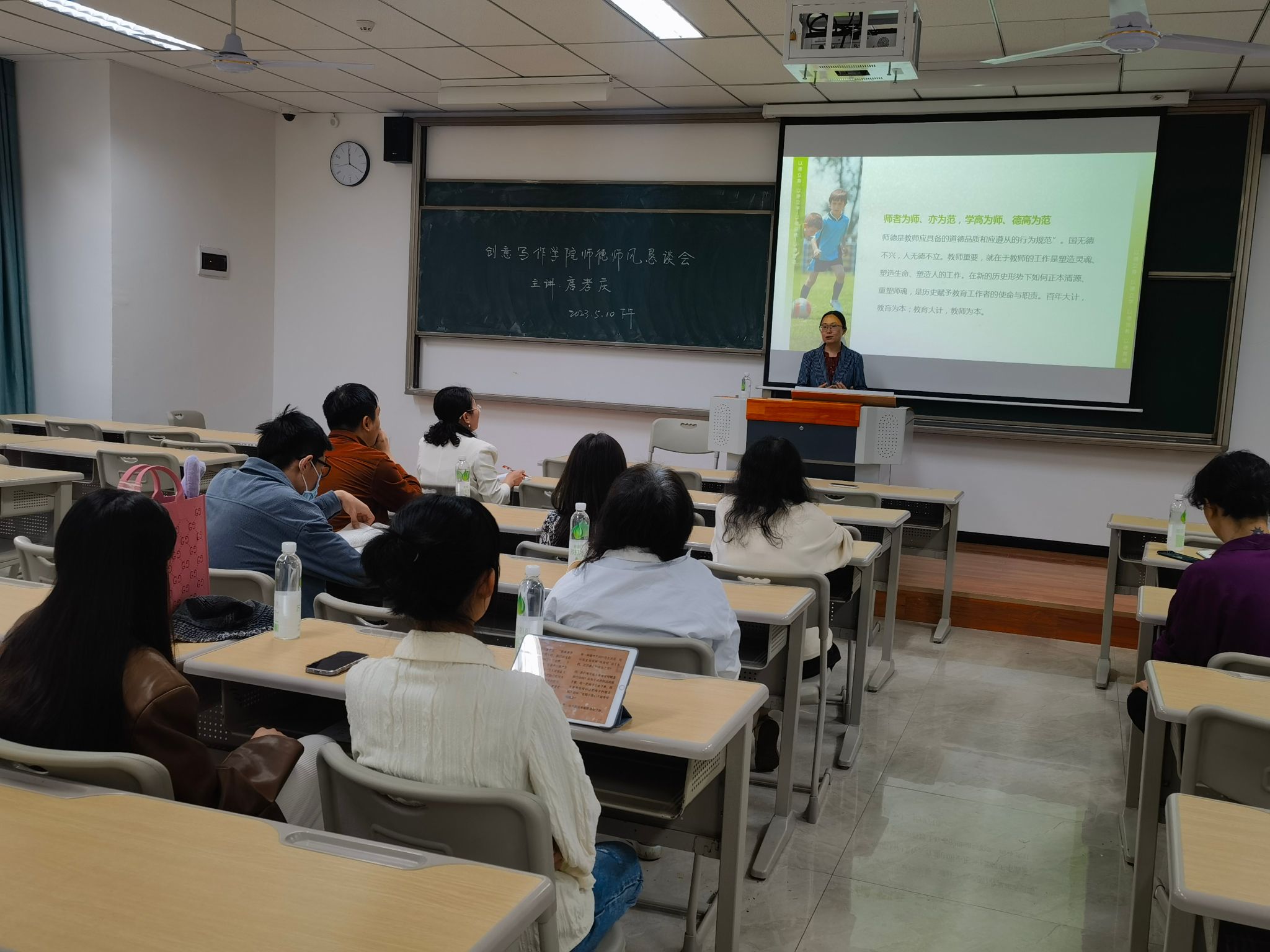 为全面贯彻习近平总书记关于师德师风的重要论述精神,5月10日下午16:00在仁者楼312教室,创意写作学院邀请到马克思主义学院、马克思主义基本原理教研室主任唐孝庆副教授为创意写作学院全体教师进行了一场师德师风专题教育恳谈会,会后,教师们直言很受教益。