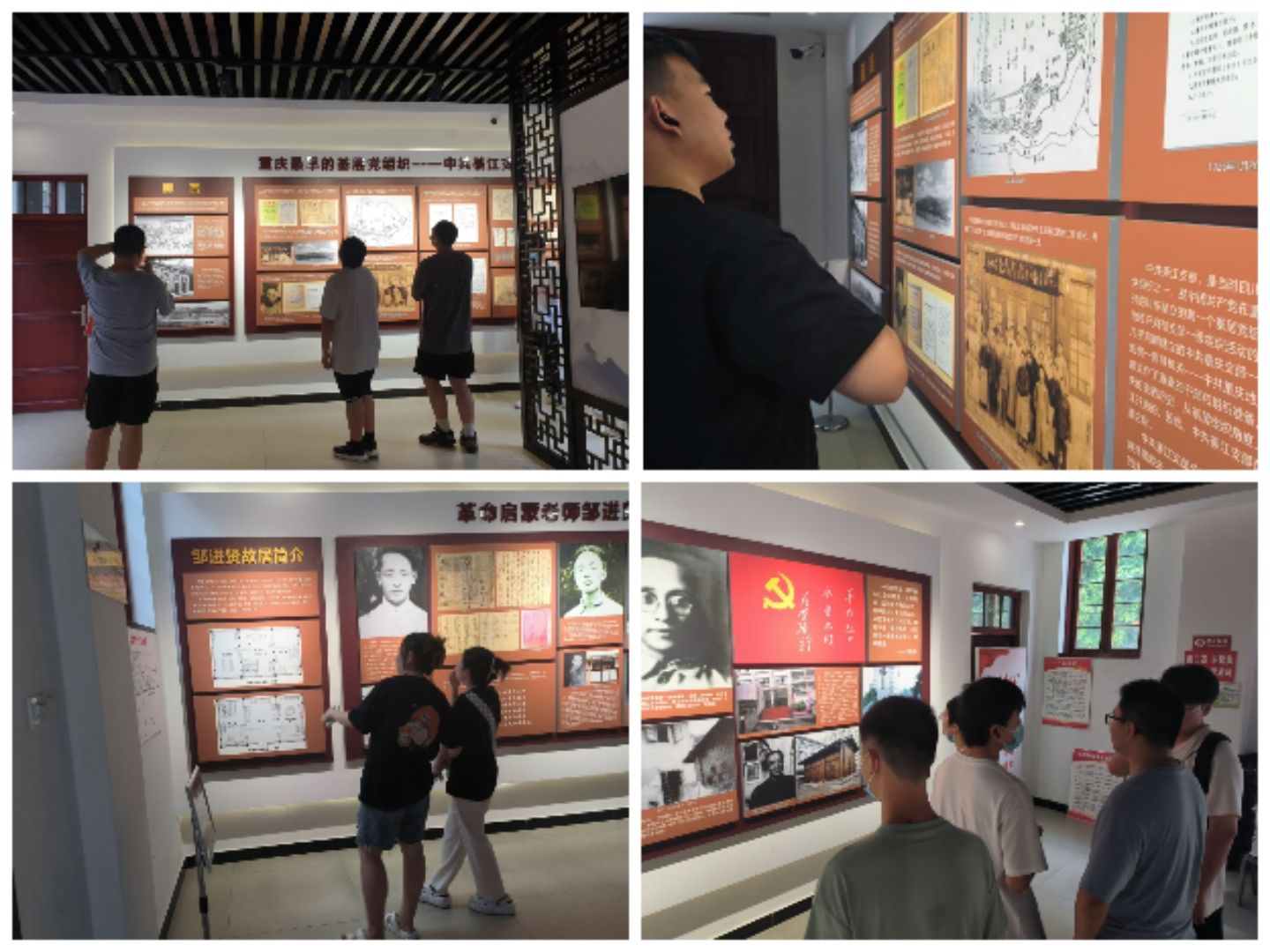 透过墙面许多珍贵的文字图片资料,一页页泛黄的日记手稿,陈列馆展示了革命启蒙老师邹进贤积极投身革命的光辉事迹和那一段波澜壮阔的革命历史。同学们也了解到以邹进贤同志为书记成立的中共綦江支部是重庆有确切记载的最早党支部,也是整个四川最早的三个党组织之一,为党在四川的统一领导机关——中共重庆地方执行委员会(重庆地委)的建立做了重要的干部和组织准备。中共綦江支部广泛宣传、教育、发动群众,建立学生联合会、妇女协会、各行帮工会和基层农民协会,地方党组织领导了“东溪米案”、“反剿赤斗争”等10余次影响较大的革命斗争,使綦江成为重庆大革命运动的重要阵地和革命工作开展得最好的地区之一,为綦江留下一笔浓墨重彩的红色印记。