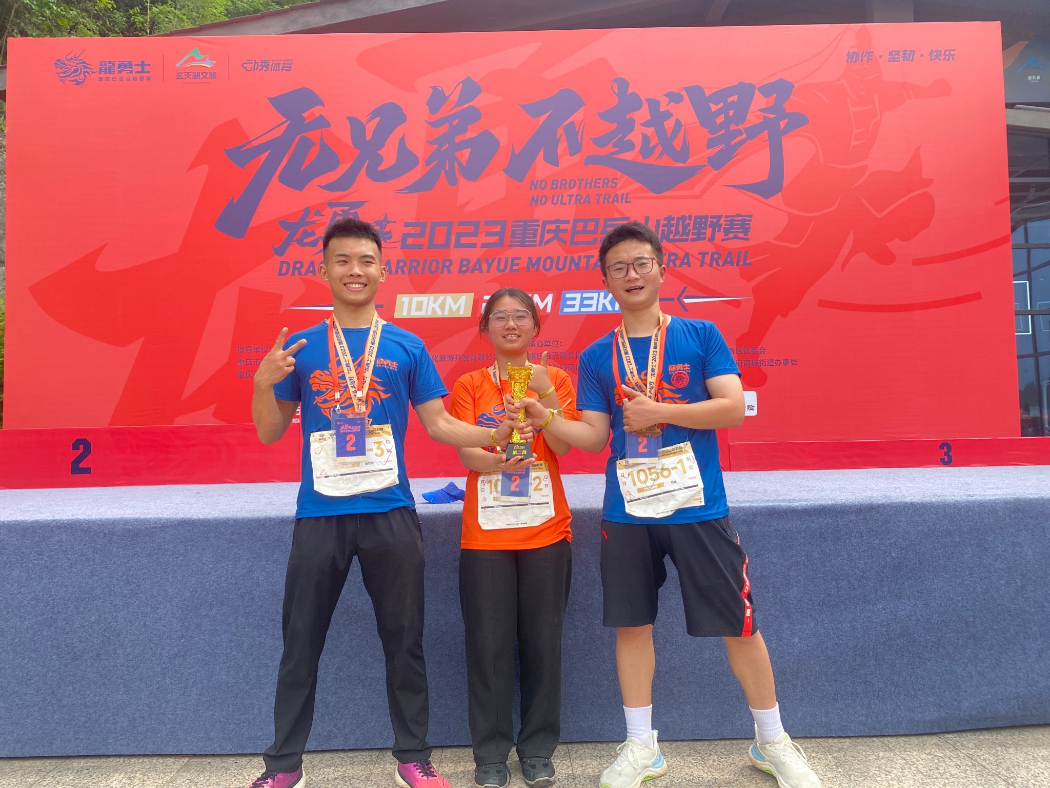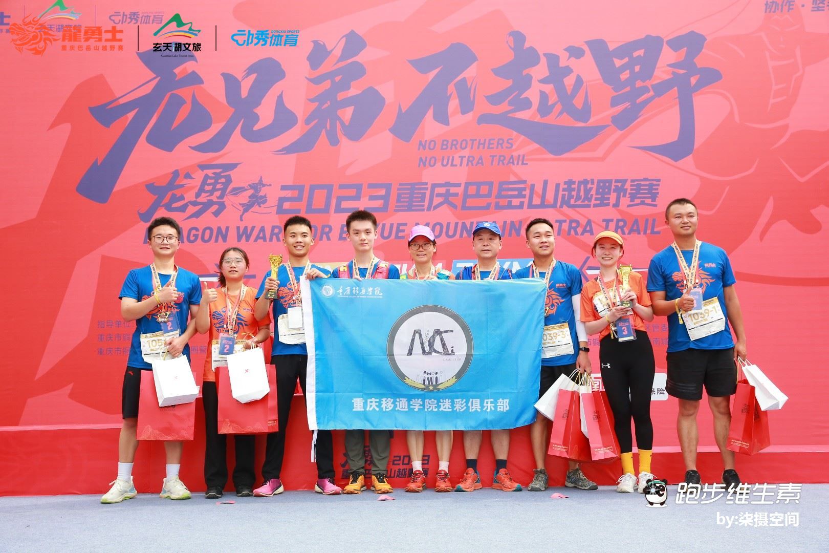近日,“龙勇士”2023重庆巴岳山越野赛是巴岳山越野系列赛在重庆铜梁落下帷幕,赛事共吸引了297名选手同台竞技、一决高下。我校迷彩俱乐部16名同学在张桃老师和黄杜娟老师的带领下燃情奔跑,勇夺10KM赛道的亚军、季军、第四名,为社团发展打下坚实基础。