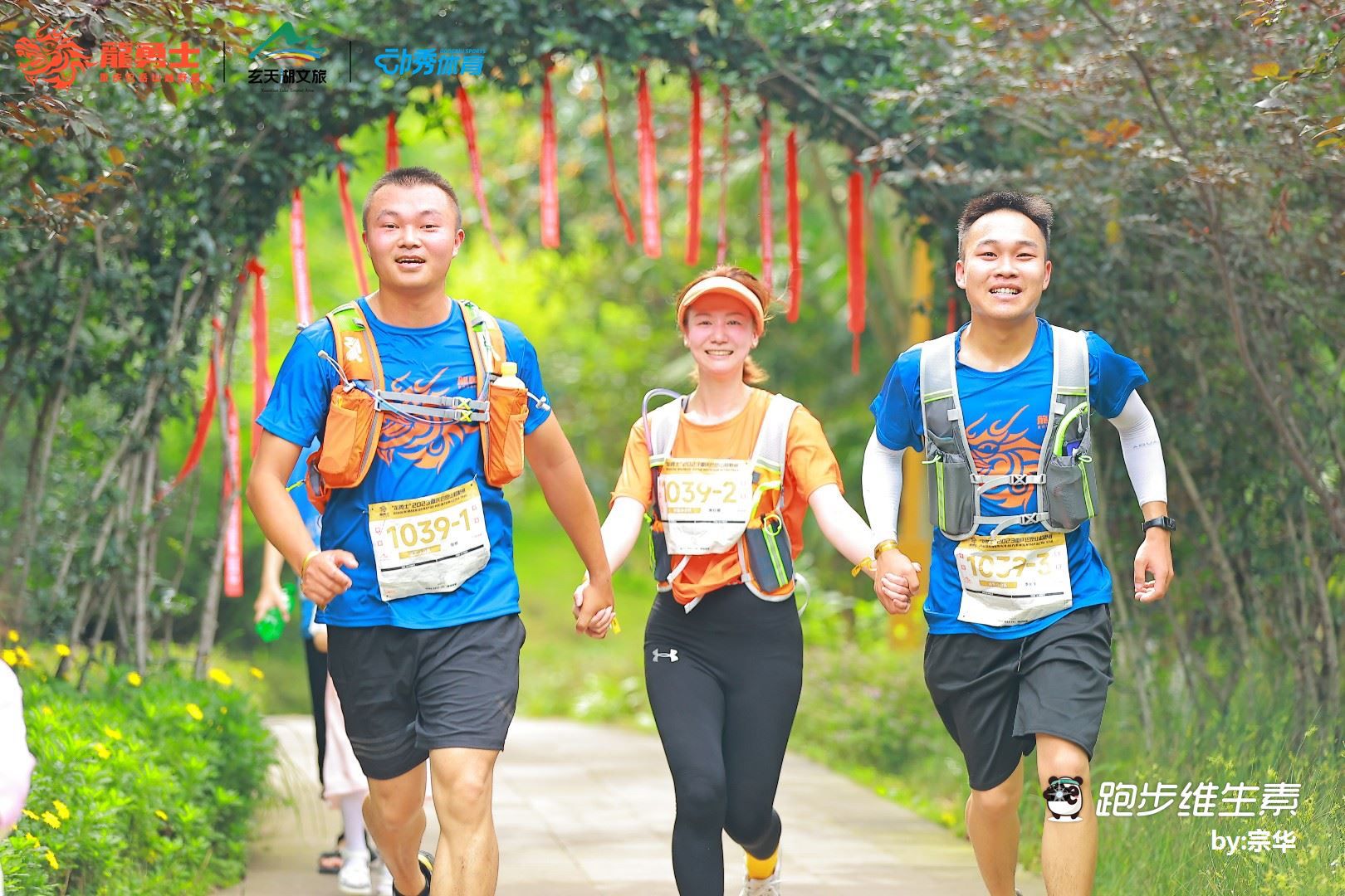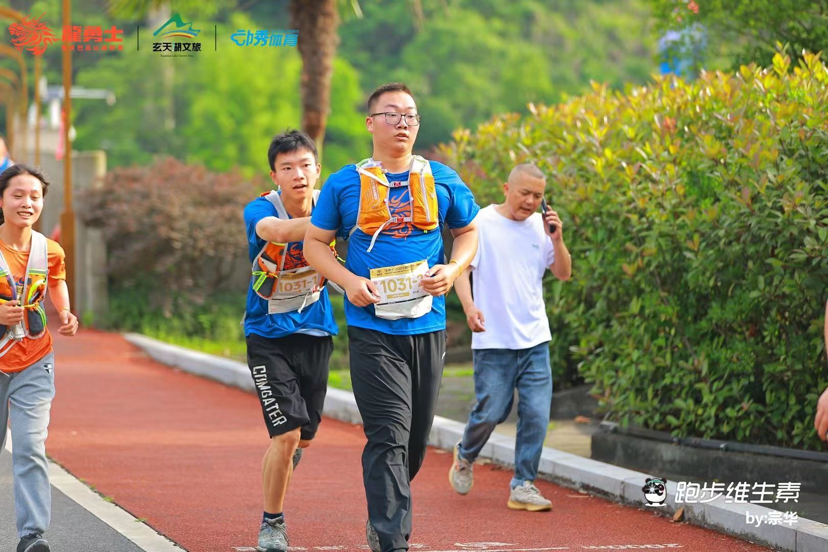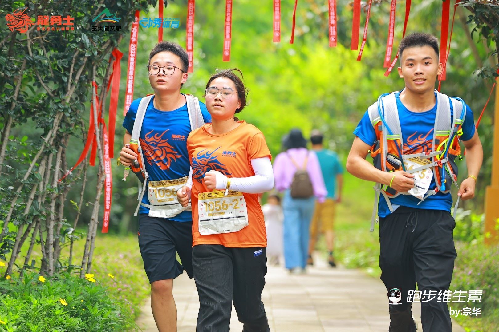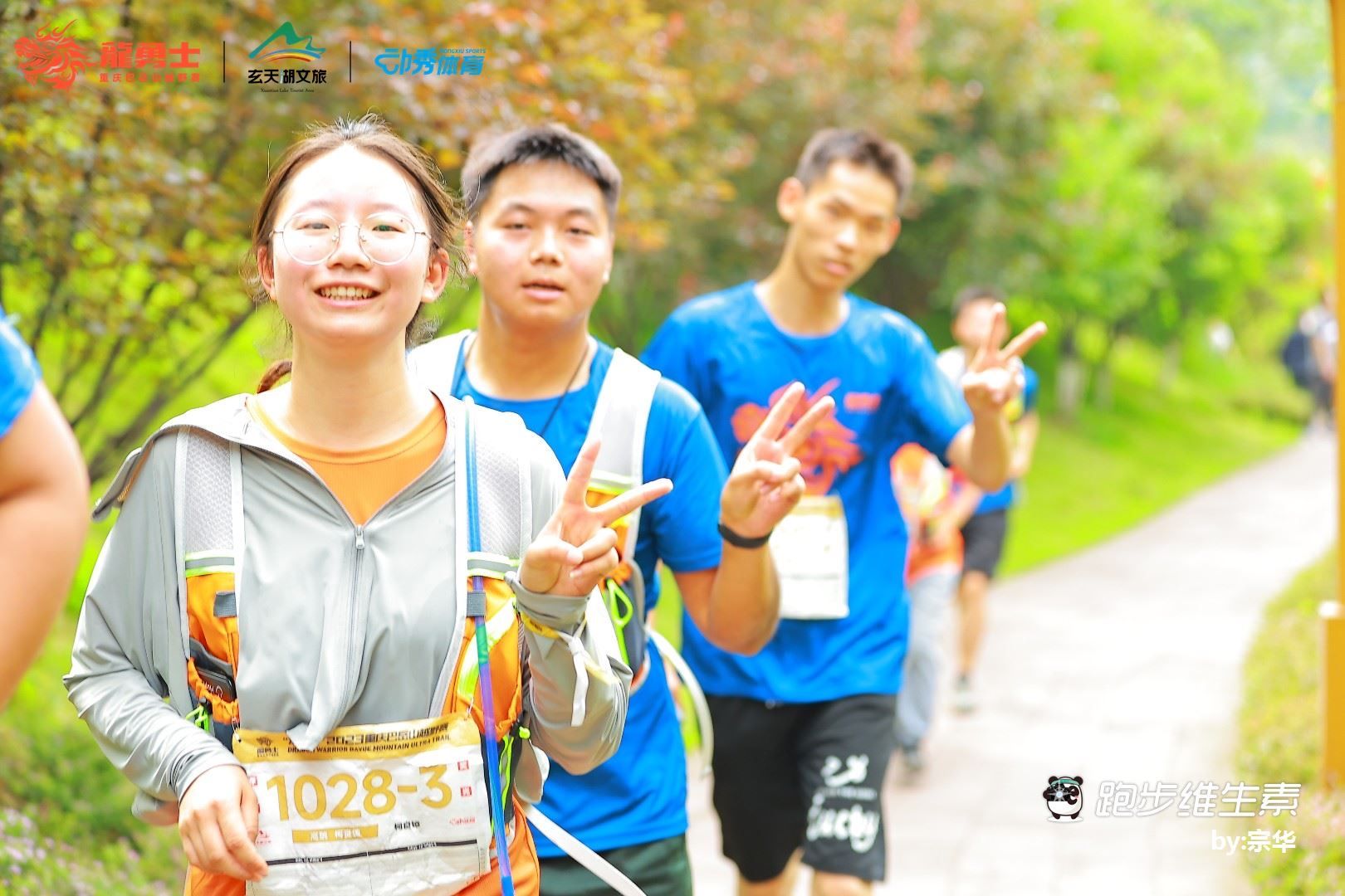 随着发令枪响,10km组、20km组、33km组共计99支队伍奔涌而出。黄杜娟老师说:和马拉松相比,越野跑对参赛选手的身体素质要求更为全面,上坡考验腿部力量和心肺功能,下坡考验身体的控制能力。这次越野比赛与众不同的是团队作战,不仅是体现个人的综合实力,更重要的是考验团队的合作能力。赛中,同学们从玄天湖跑步服务中心出发,途经了环湖步道、黄桷门、双乳石、天灯石、九龙寺、威震门、飞来石、巴岳寺、玄天湖浮桥栈道等特色景点,沉浸式体验了山水相连、人水相依的生态美景。
