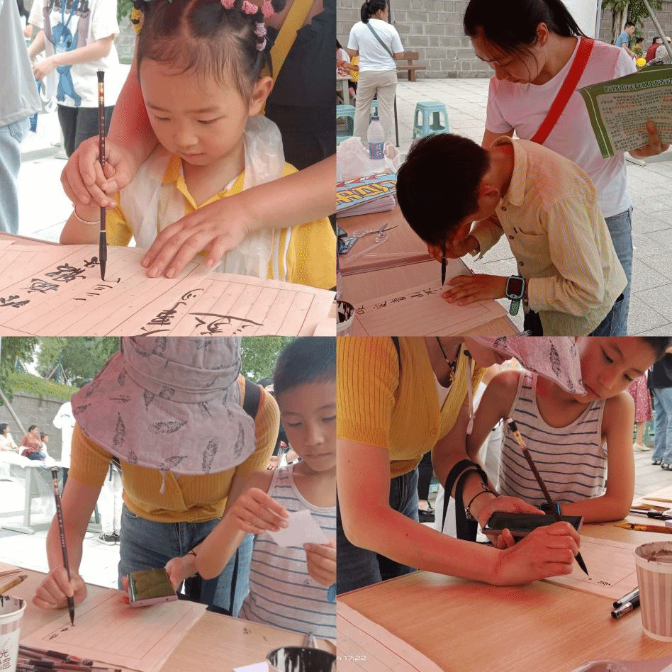 文化的传承不是凭空而来的,此次活动最让人难忘的场景之一莫如父母手把手教授孩子写毛笔字,这就像一种传承,在孩子的心中种下了一颗关于传统文化的种子,这颗种子会长成林荫大树然后又影响下一代。